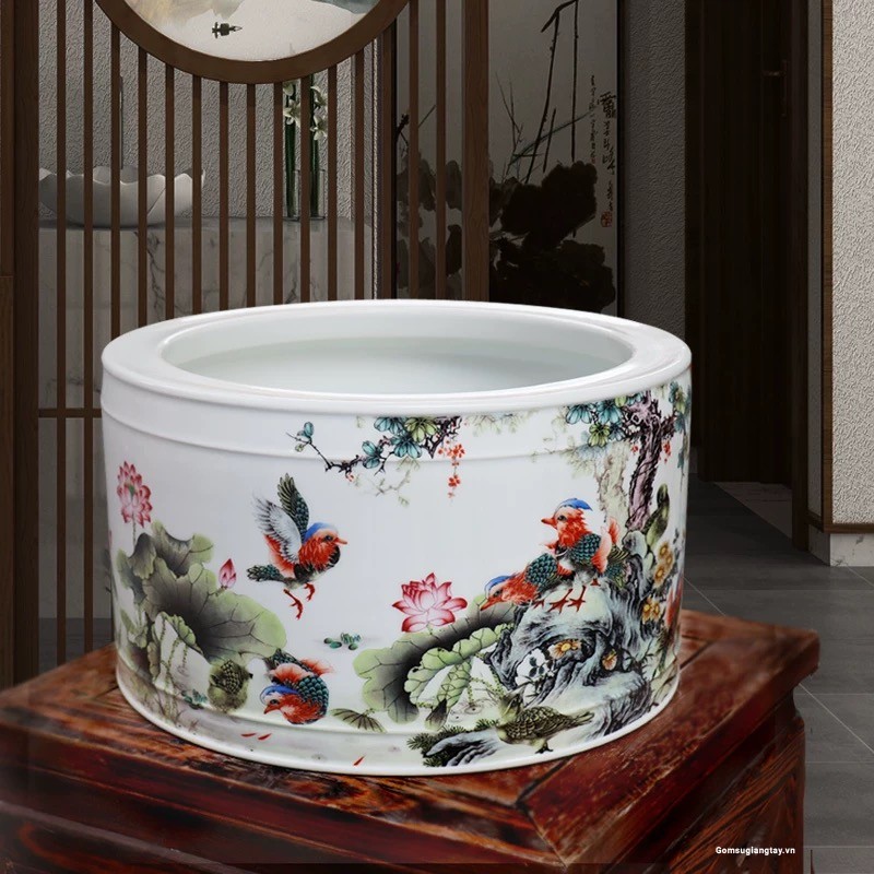 Ang thống tráng men sản xuất công nghệ hiện đại, tích chim hoa bình an may mắn.