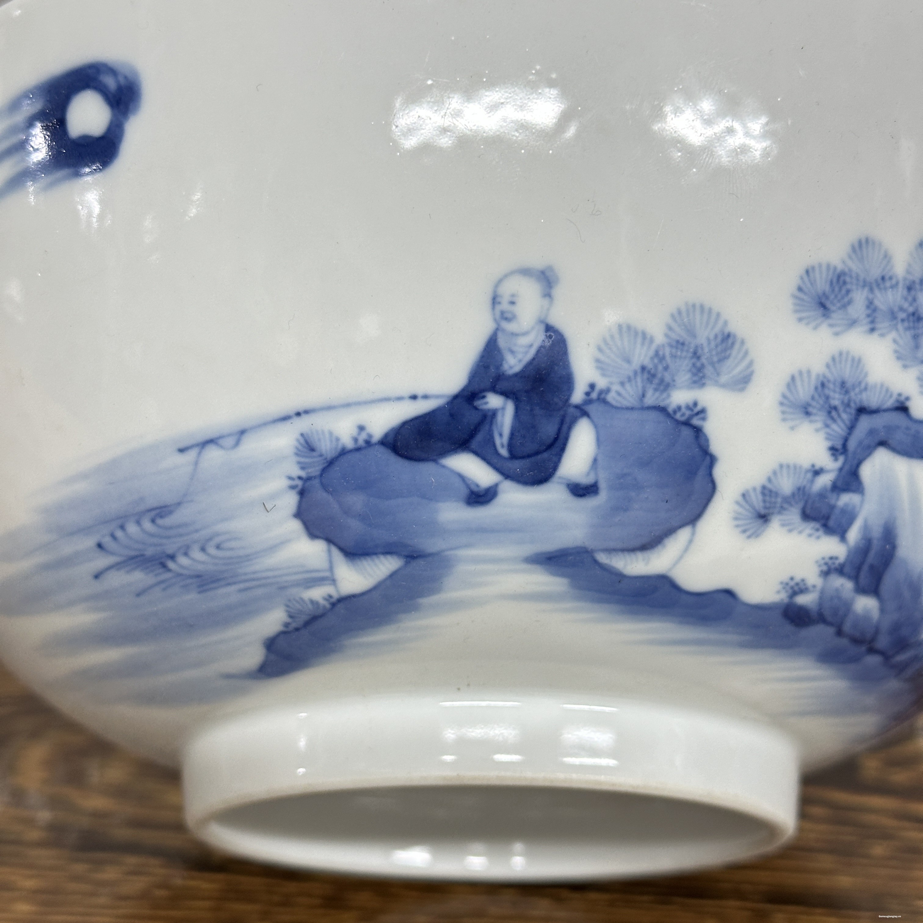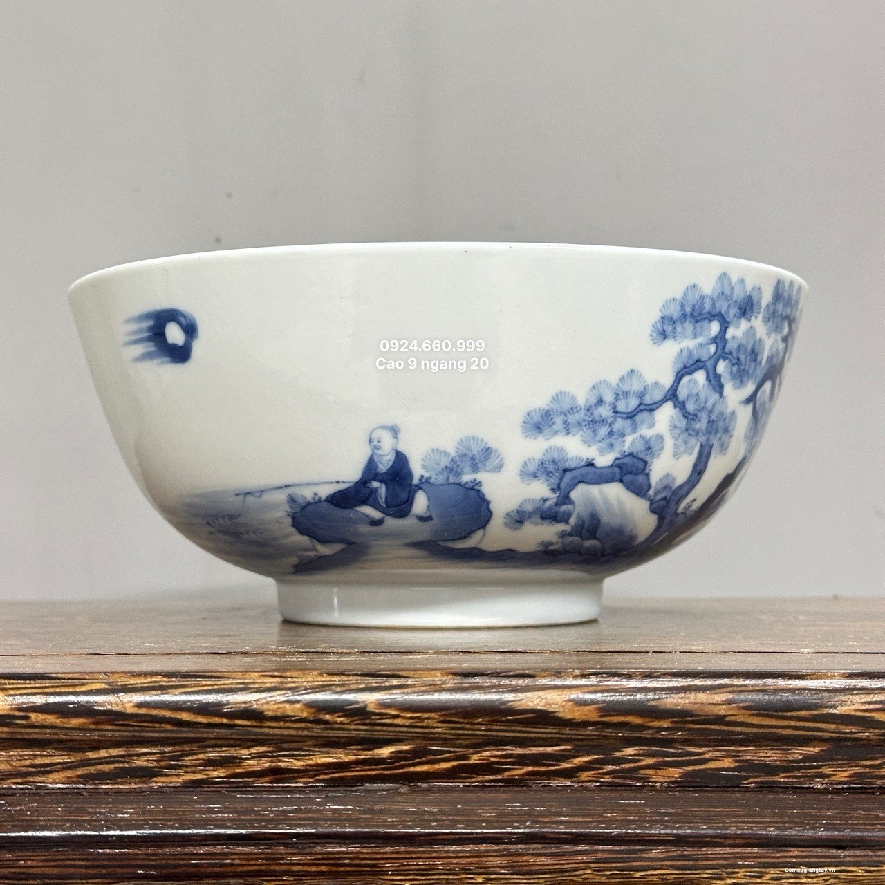 Bát cũ vẽ ngư ông đắc Lợi vẽ tay tơ tóc, men rất đanh.