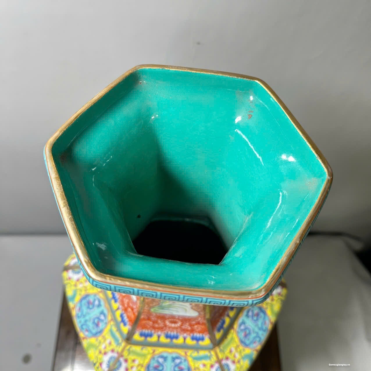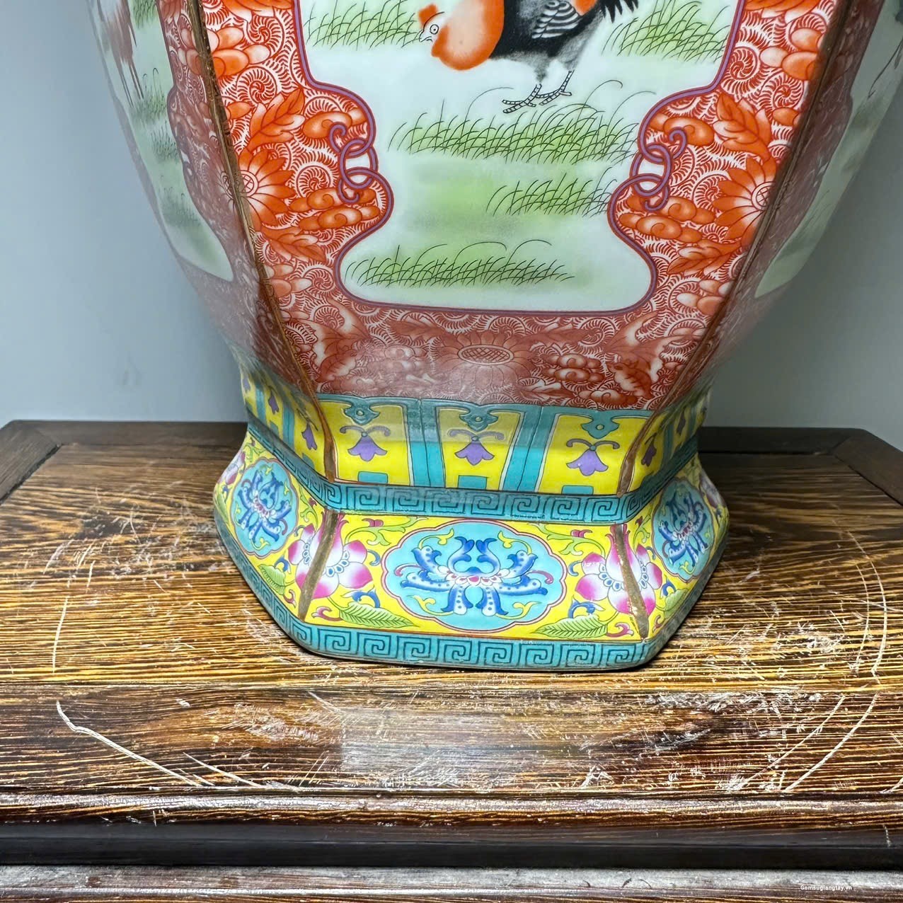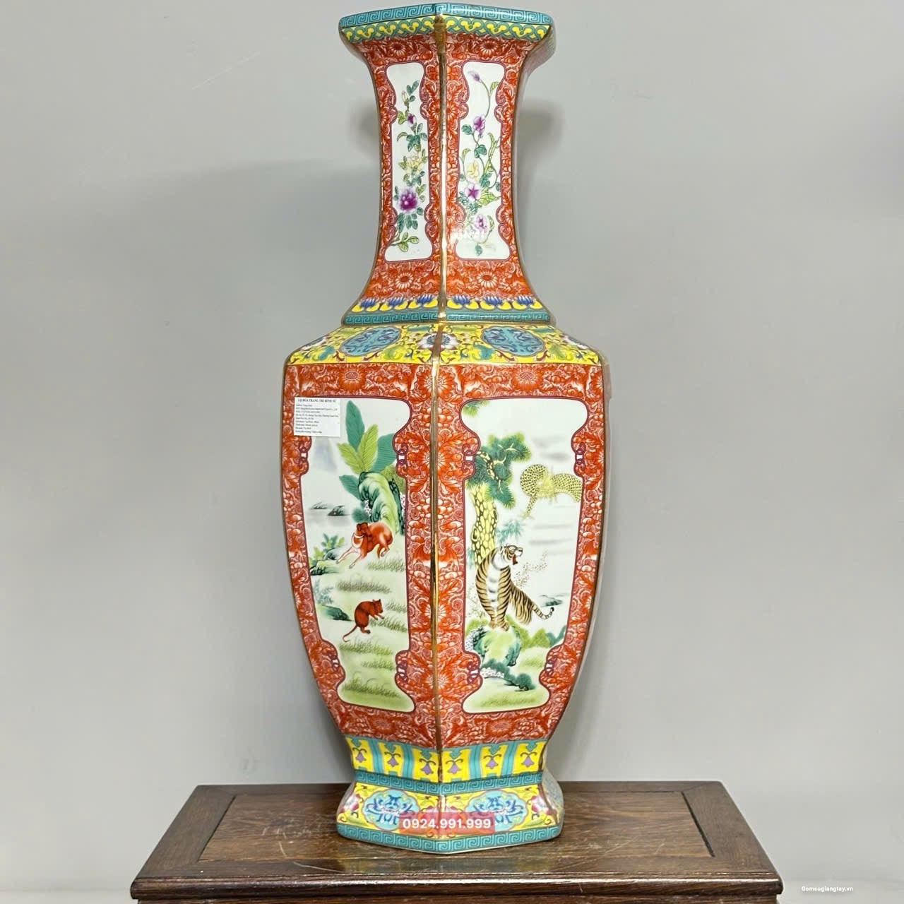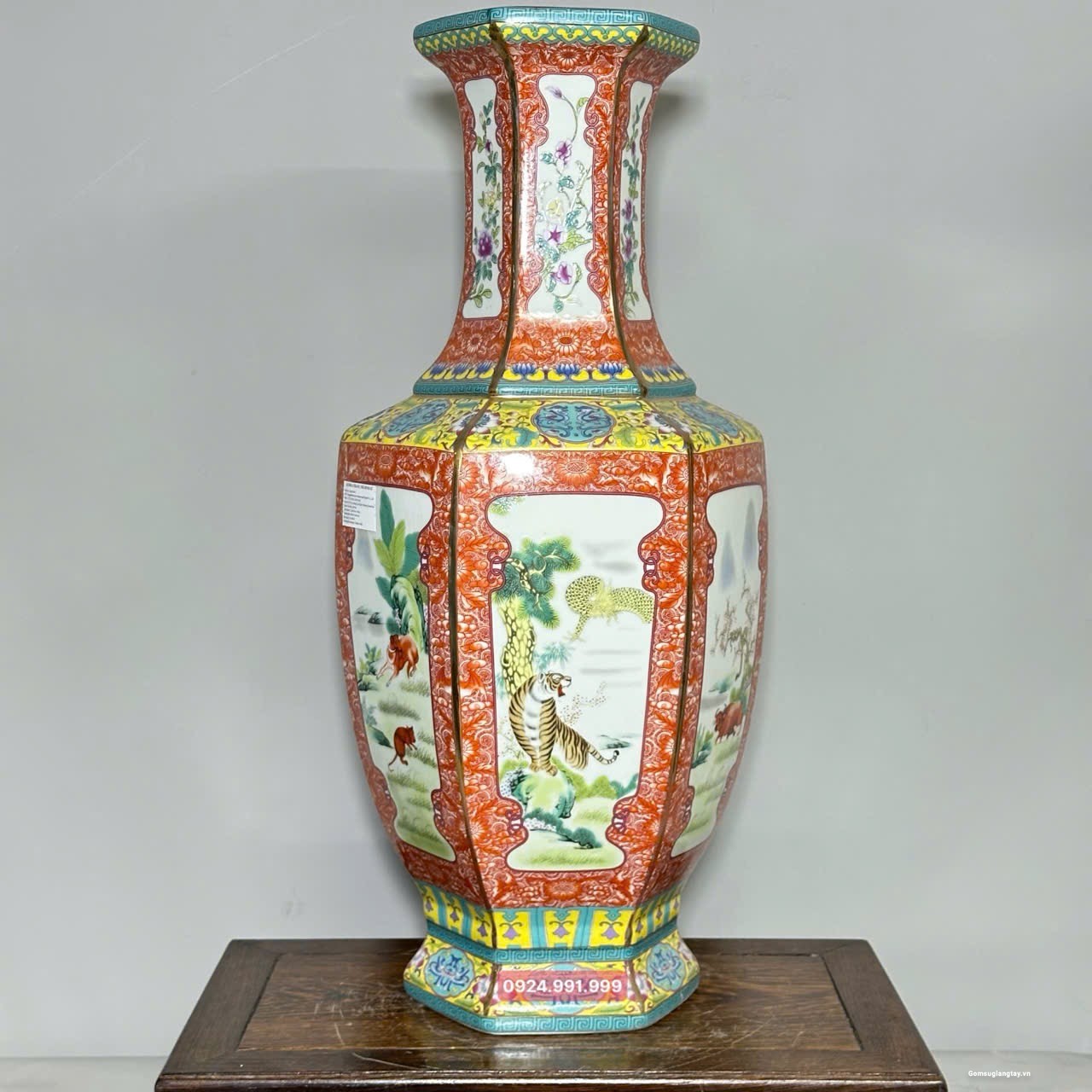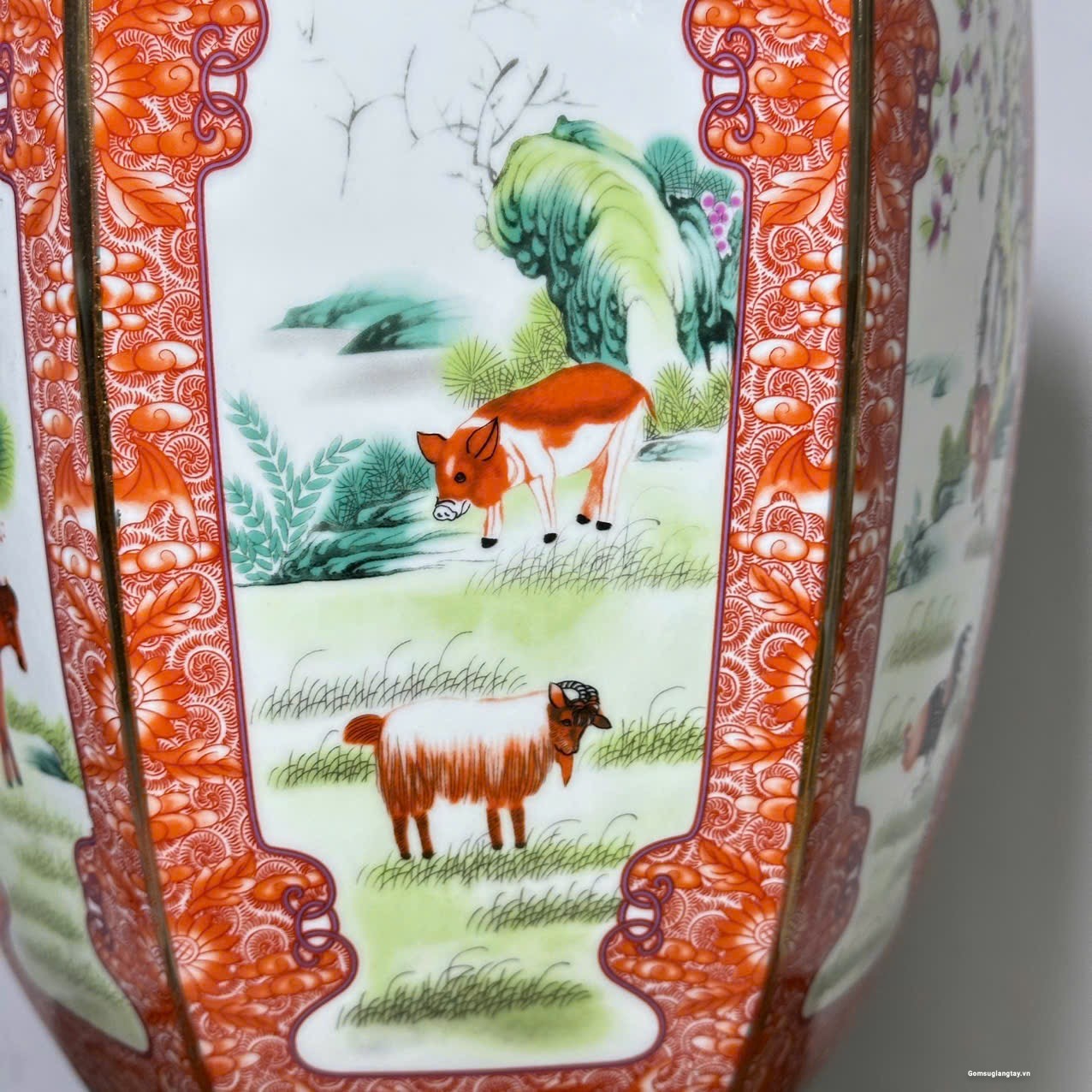 Bình vẽ 12 con giáp kiểu bình lục zác viền vàng, sang trọng.