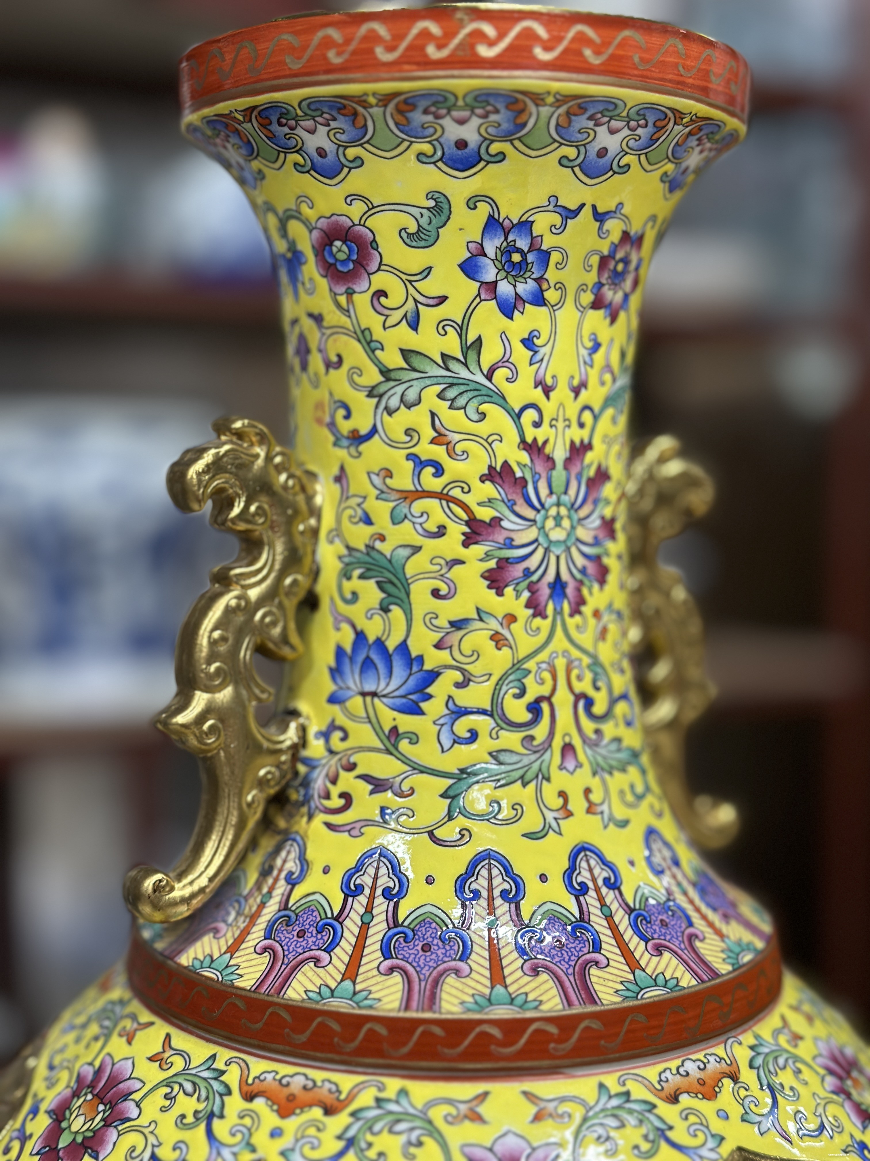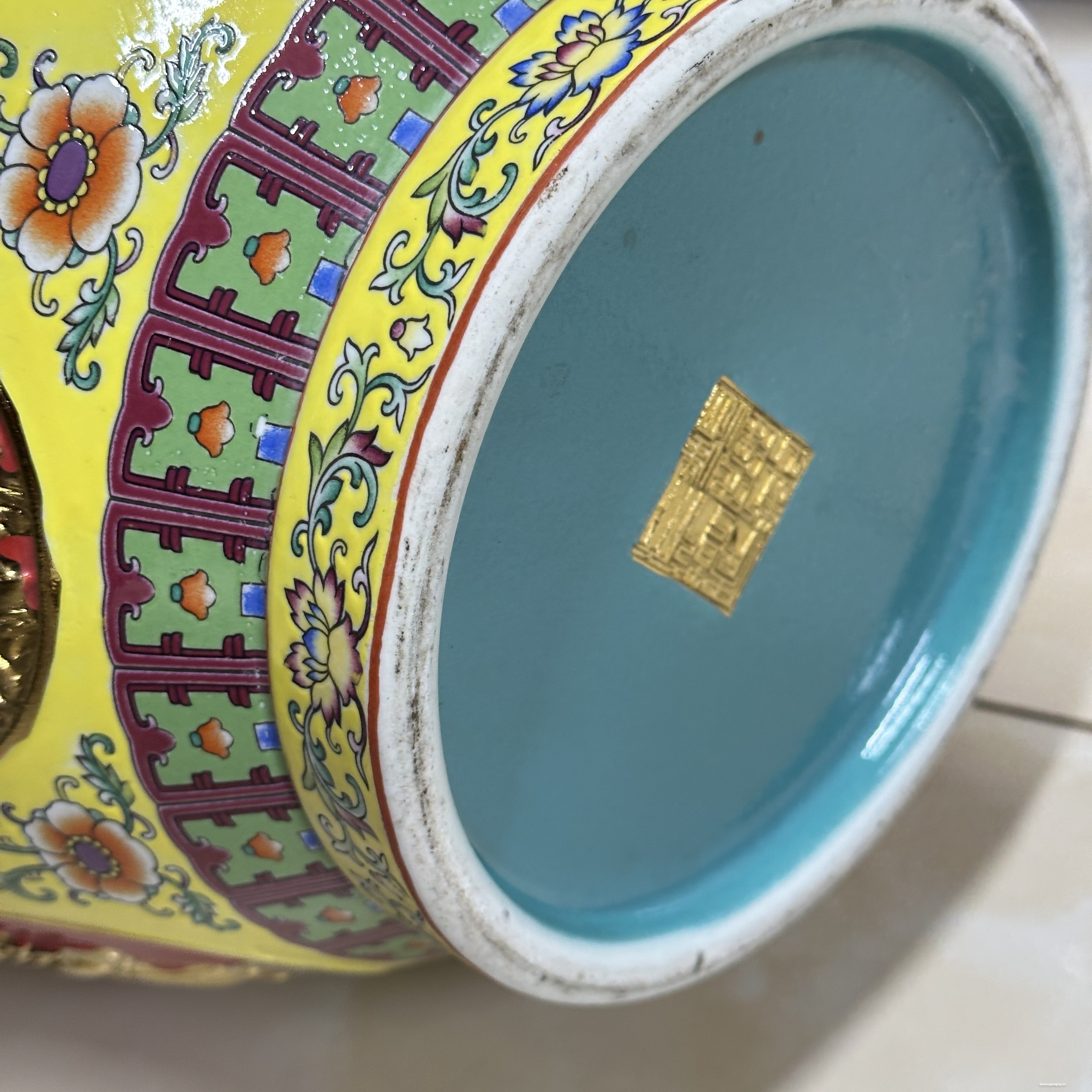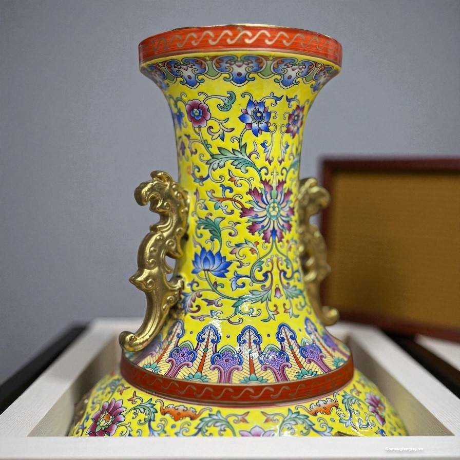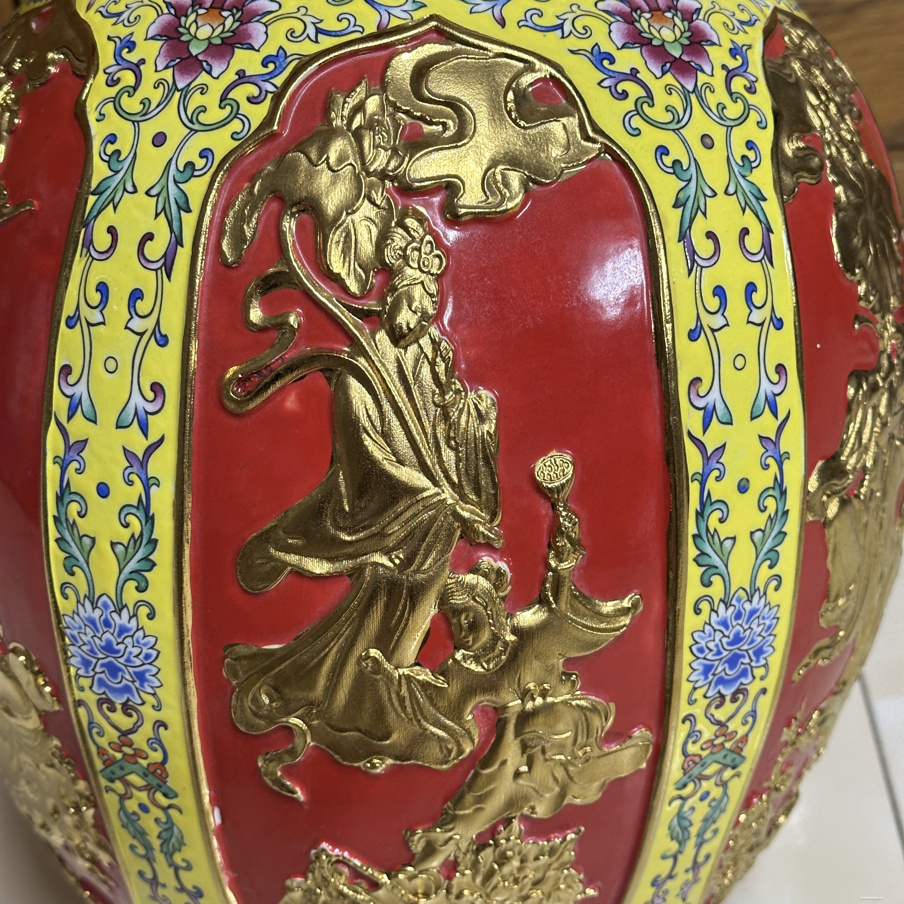 Bình củ tỏi vẽ vàng khắc nổi tích Bát tiên vô cùng đẹp, hàng độc bản nung với nhiệt độ 1800 ° ba lần lửa.