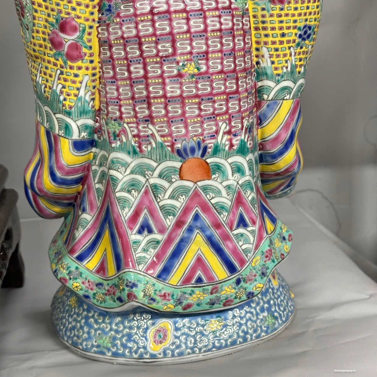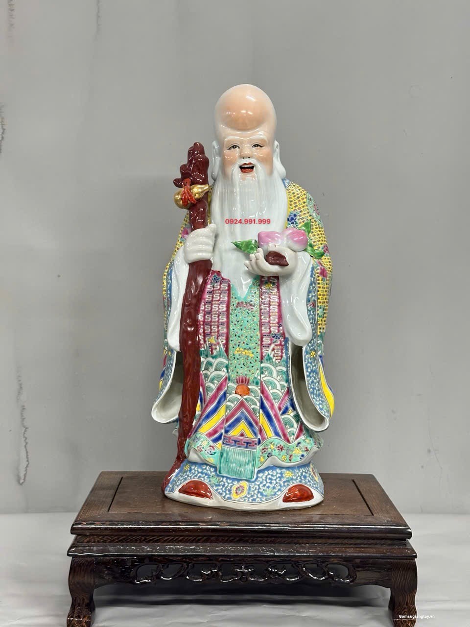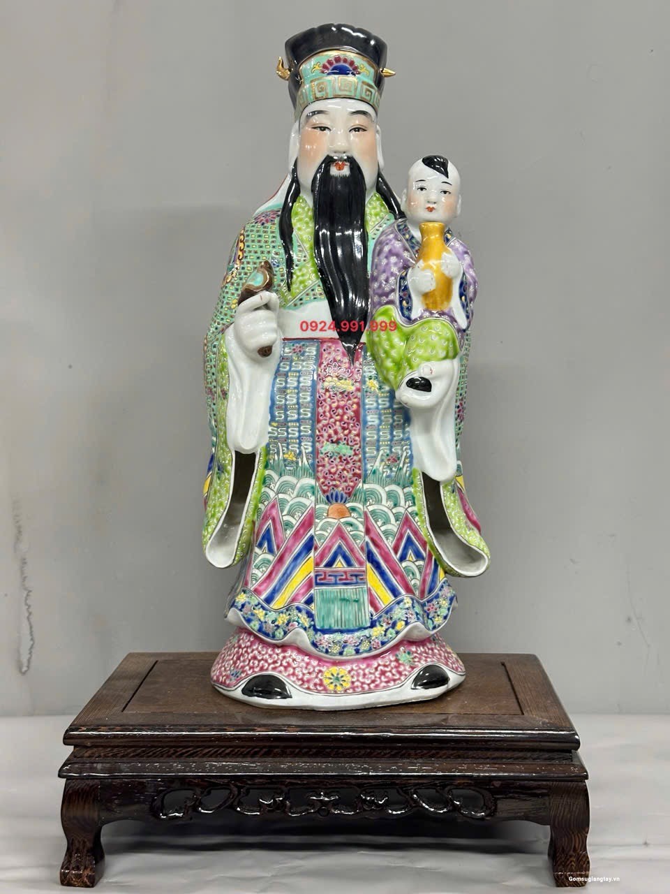 Bộ tượng Tam Đa phúc lộc Thọ áo gấm rất đẹp, nung với nhiệt độ cao 1800 ° hàng áo vẽ tay rất kỳ công.