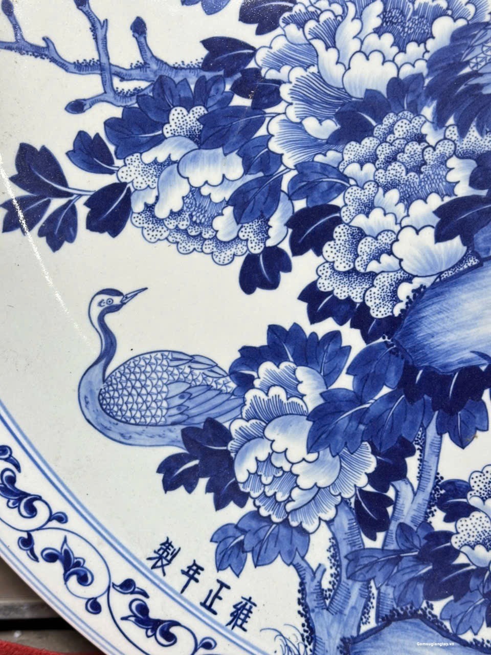 Đĩa sứ giả cổ vẽ tay, tùng hạc vẽ rất tỉ mỉ đẹp bền.