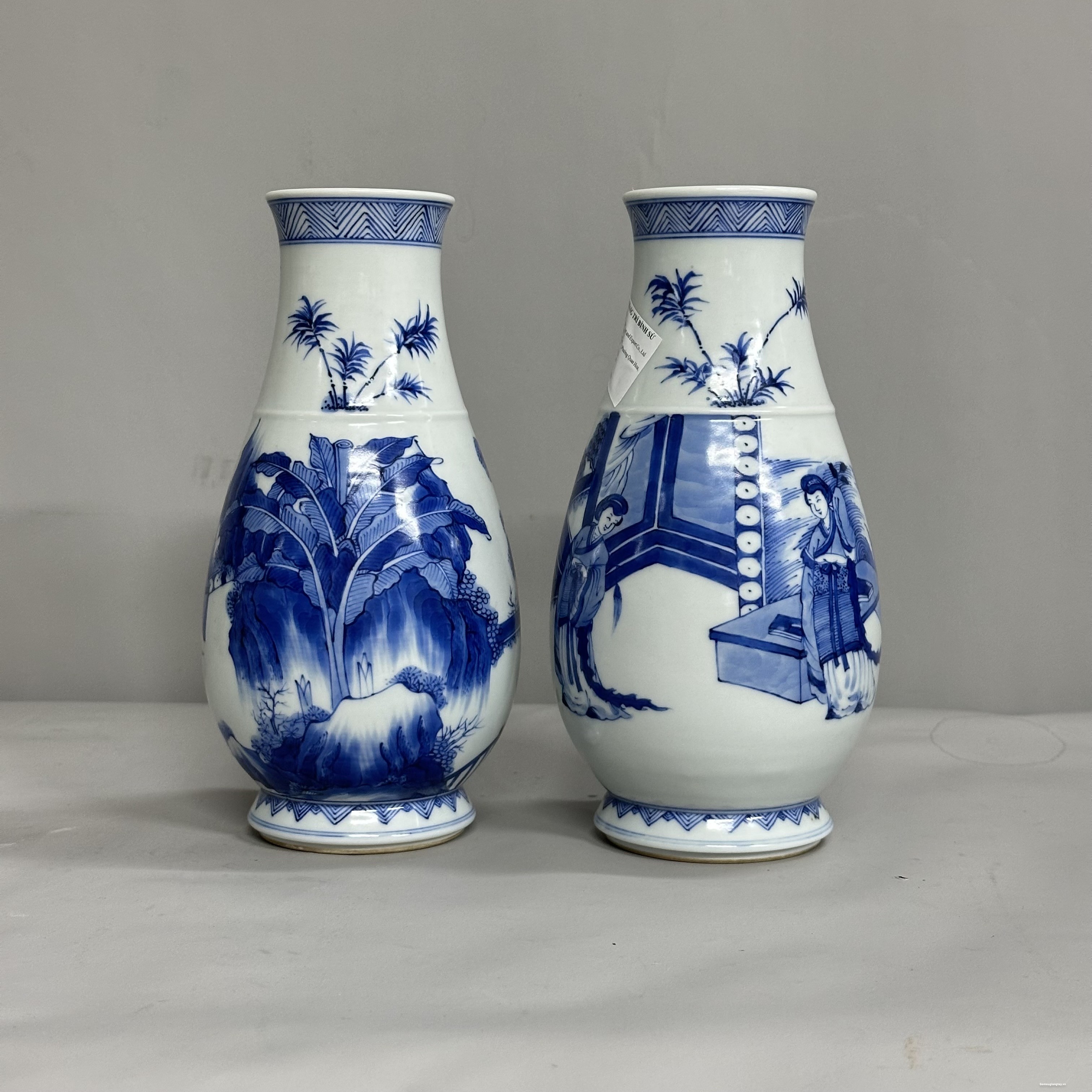 Đôi bình cũ vẽ tay nung củi vẽ tơ tóc tích song nhân.