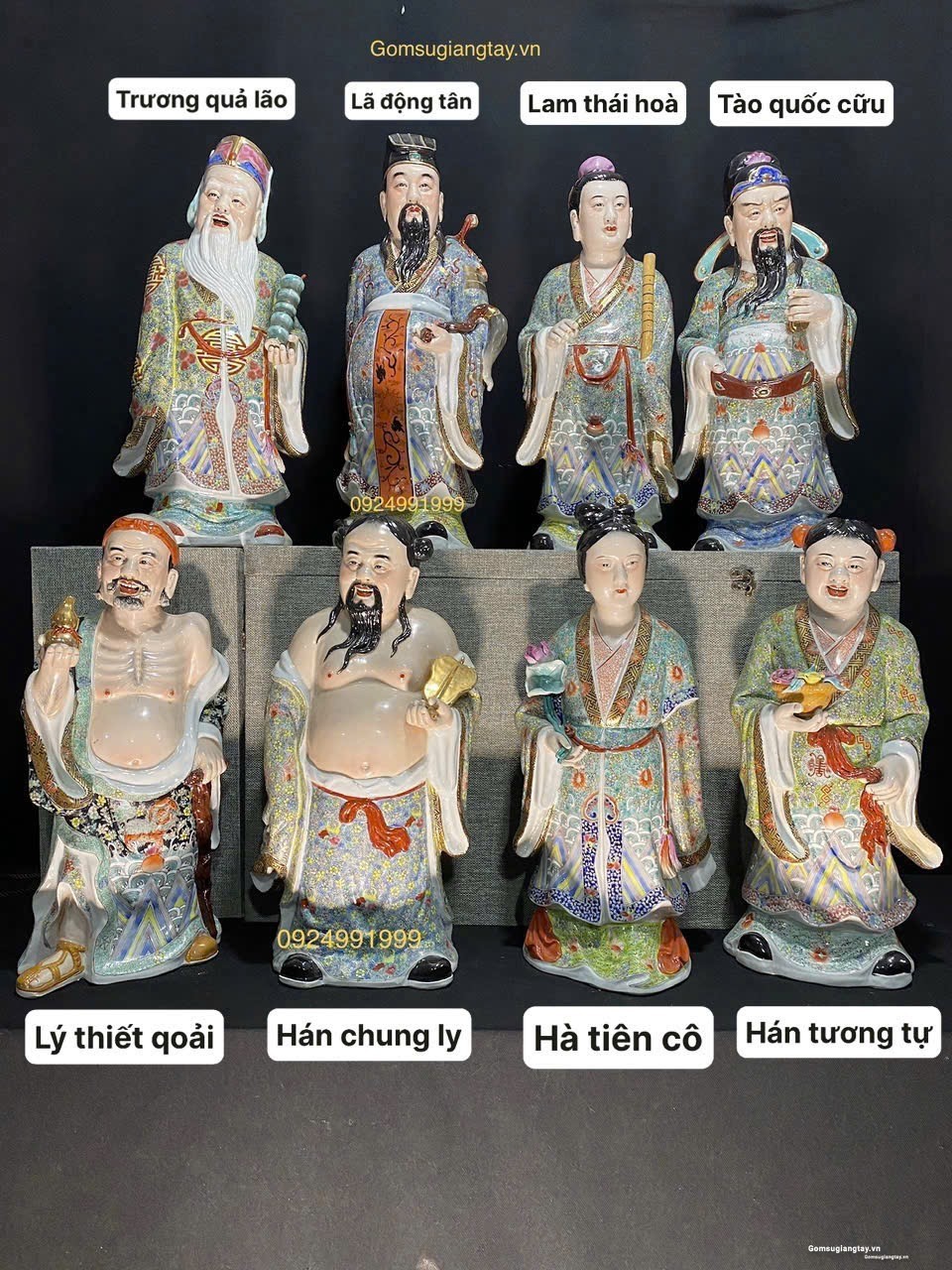 Bộ bát tiên hàng gấm nghệ nhân cao 46- 51 cm