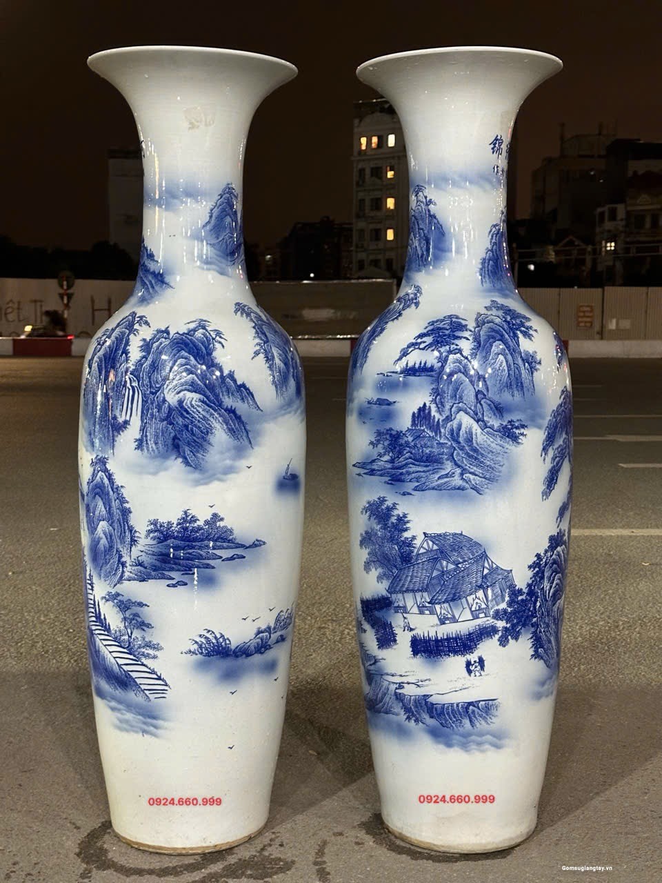 Cặp lộc bình gốm sứ cao 120 cm là dòng sản phẩm trưng bày cao cấp, mang phong cách truyền thống Á Đông với họa tiết sơn thủy hữu tình được vẽ tay hoàn toàn bởi các nghệ nhân lành nghề. Đây là mẫu lộc bình rất được ưa chuộng để trang trí phòng khách, biệt thự, văn phòng, nhà thờ họ hoặc các không gian nội thất sang trọng.