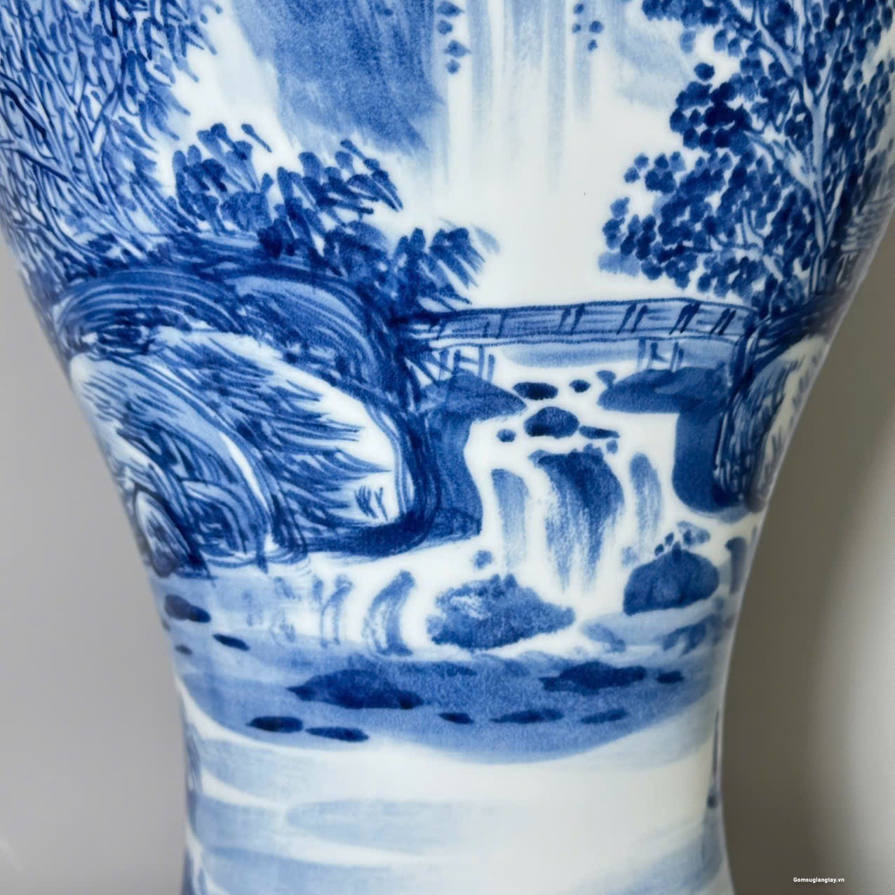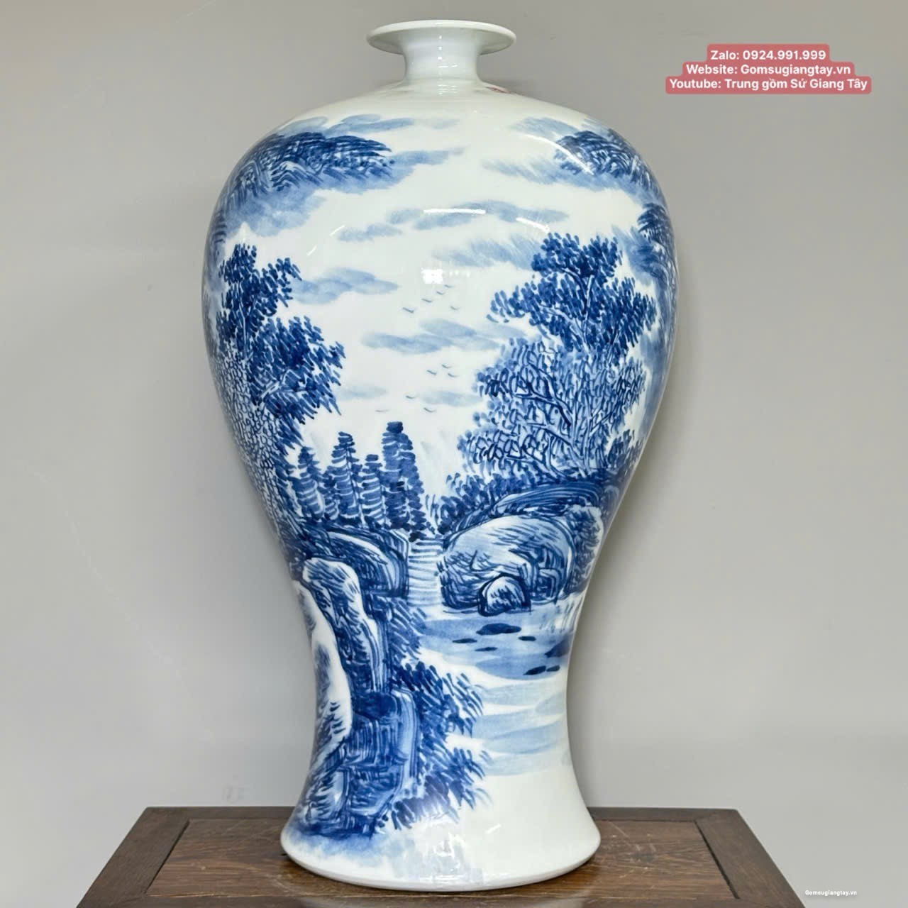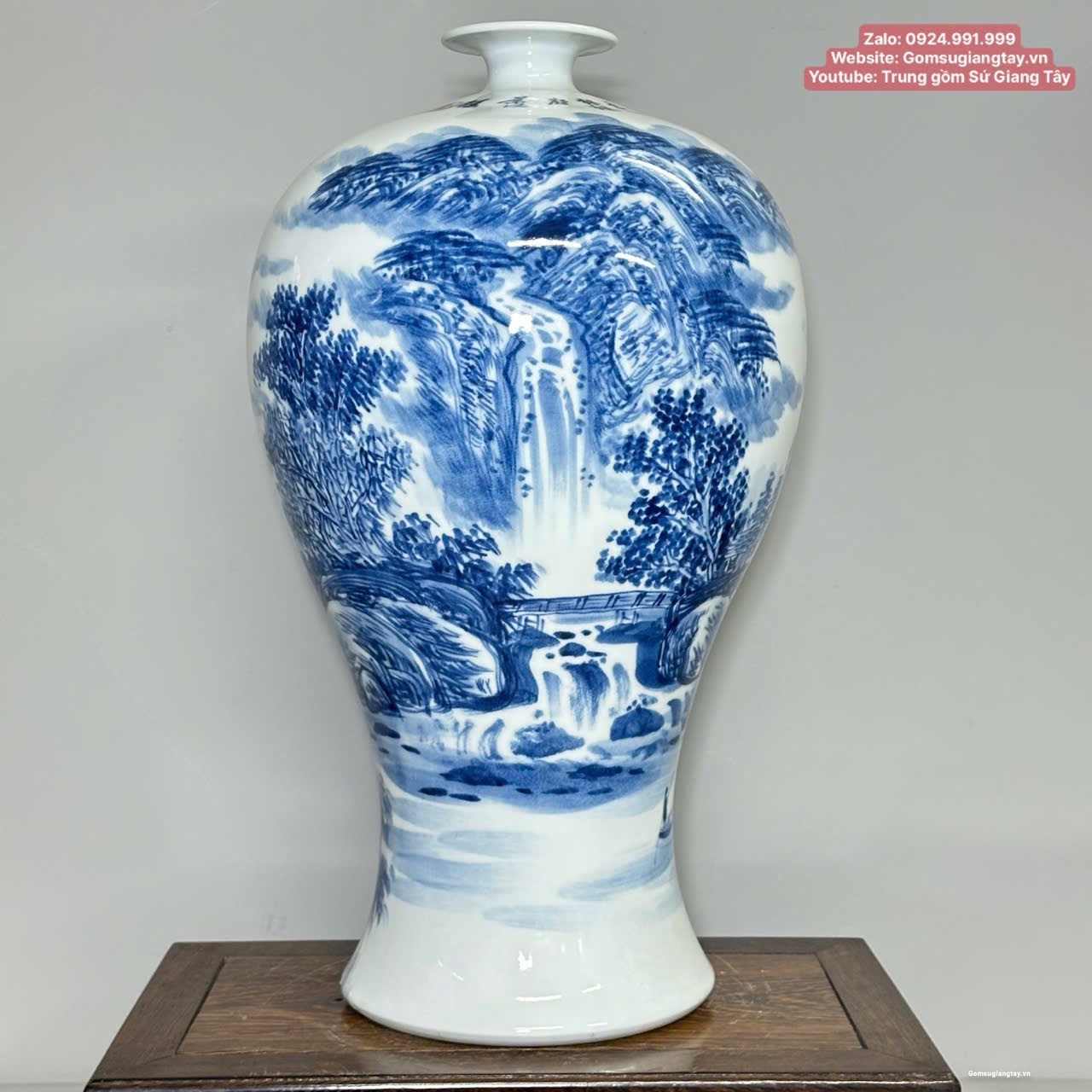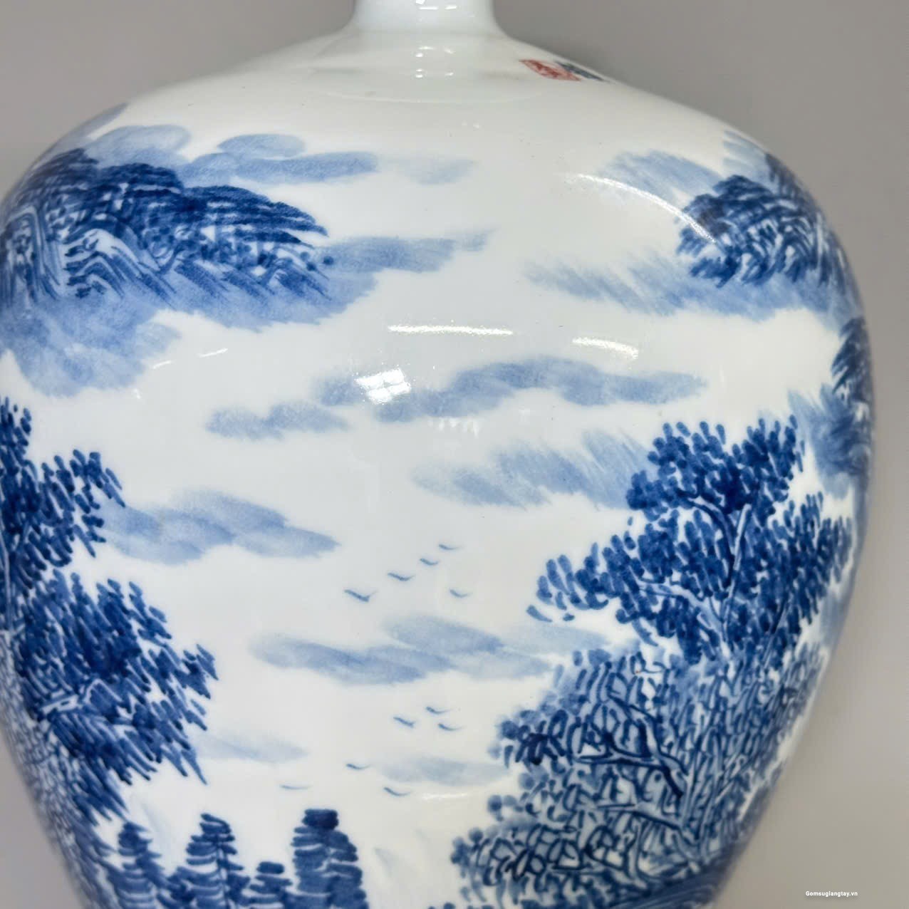 Bình hút lộc dạng mai bình cao vẽ tay, tích sơn thuỷ hữu tình, tài lộc may mắn.