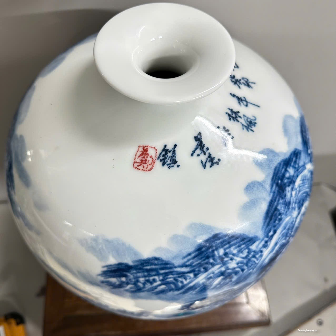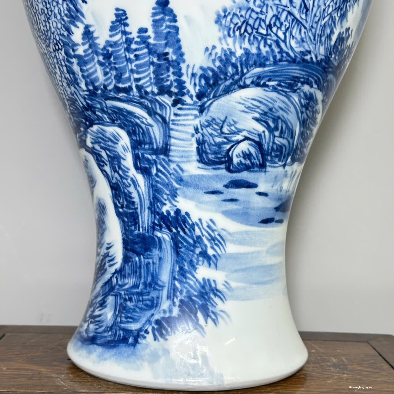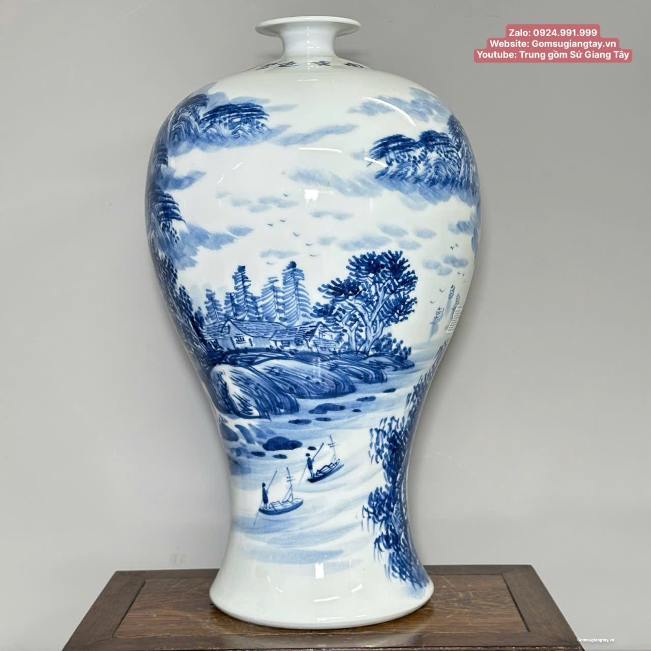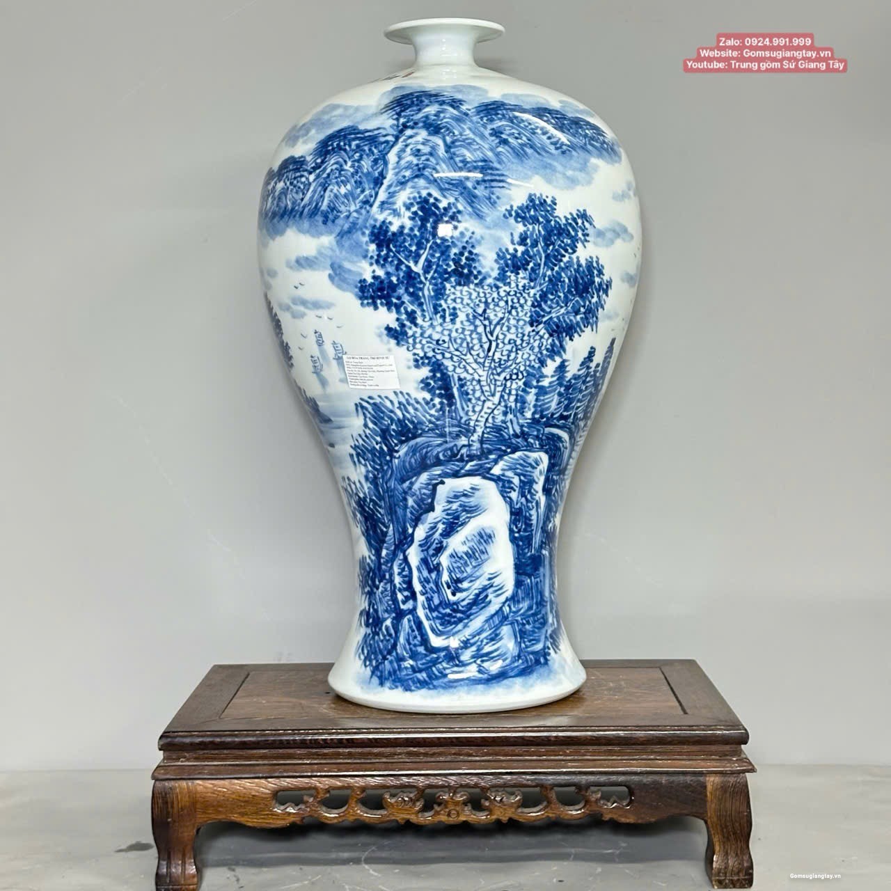 Bình hút lộc dạng mai bình cao vẽ tay, tích sơn thuỷ hữu tình, tài lộc may mắn.