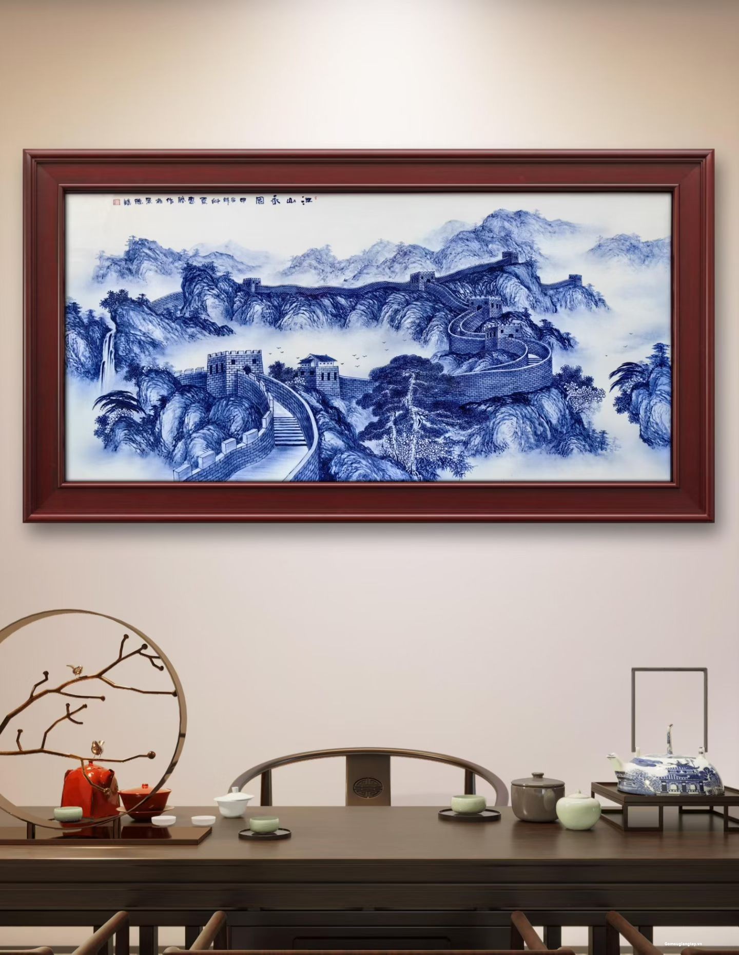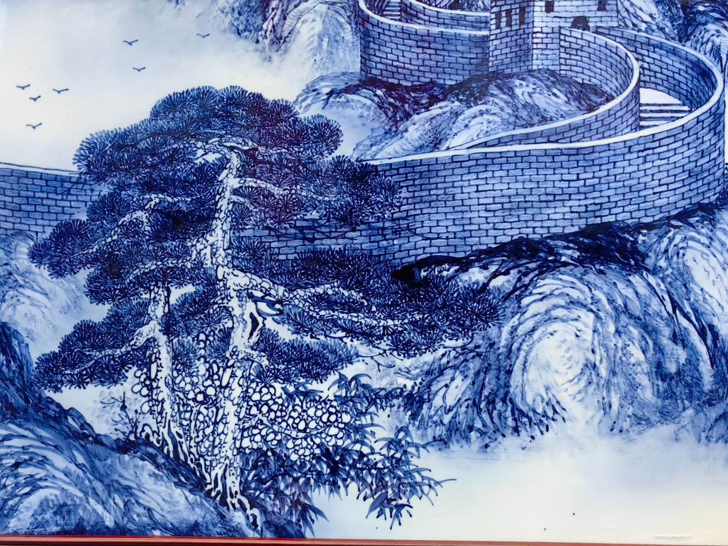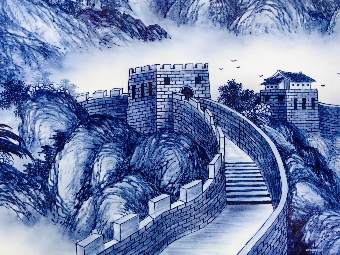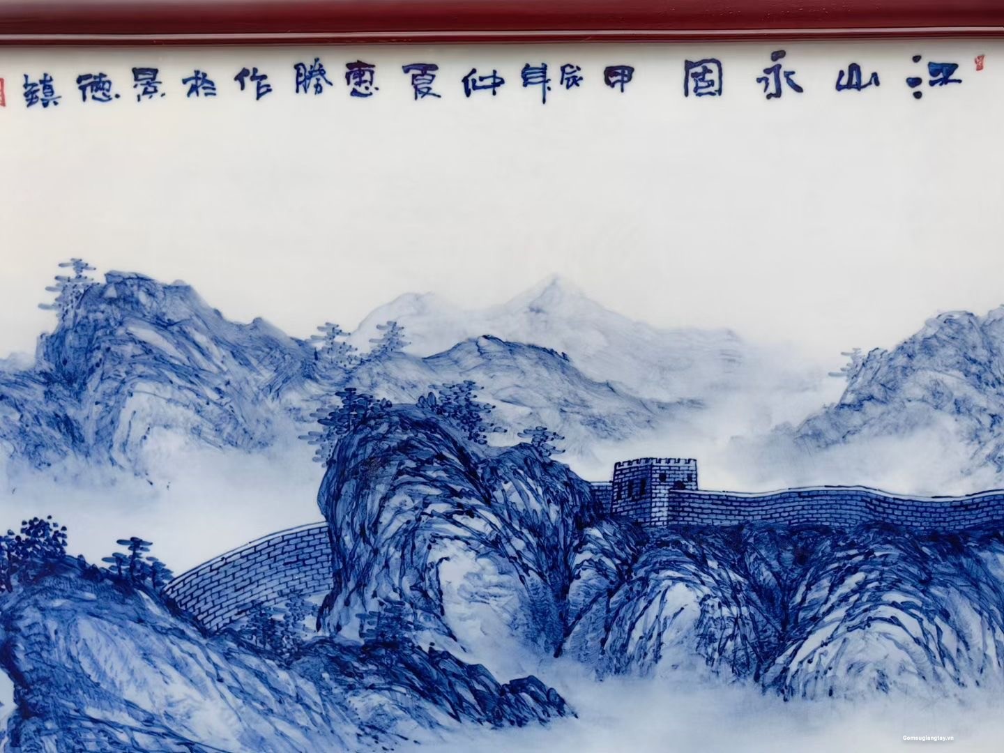 tranh vẽ tay hàng cao cấp của nghệ nhân có cấp sổ nghệ nhân, vẽ bồng lai tiên cảnh, sơn thủy hữu tình, điểm nhấn là Vạn lý Trường Thành, nét vẽ tơ tóc có hồn từ nhánh cây từ mây bồng bềnh đều được các nghệ nhân tỉa tót tỉ mỉ rất công phu, chanh được nung với nhiệt độ cao 1.800 ° và nung đến ba lần lửa nên rất bền đẹp.