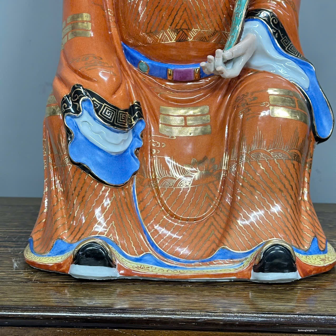 • Gốm sứ Cảnh Đức Trấn, men bóng, họa tiết tỉ mỉ, phối đỏ cam – xanh – nhũ vàng nổi bật
