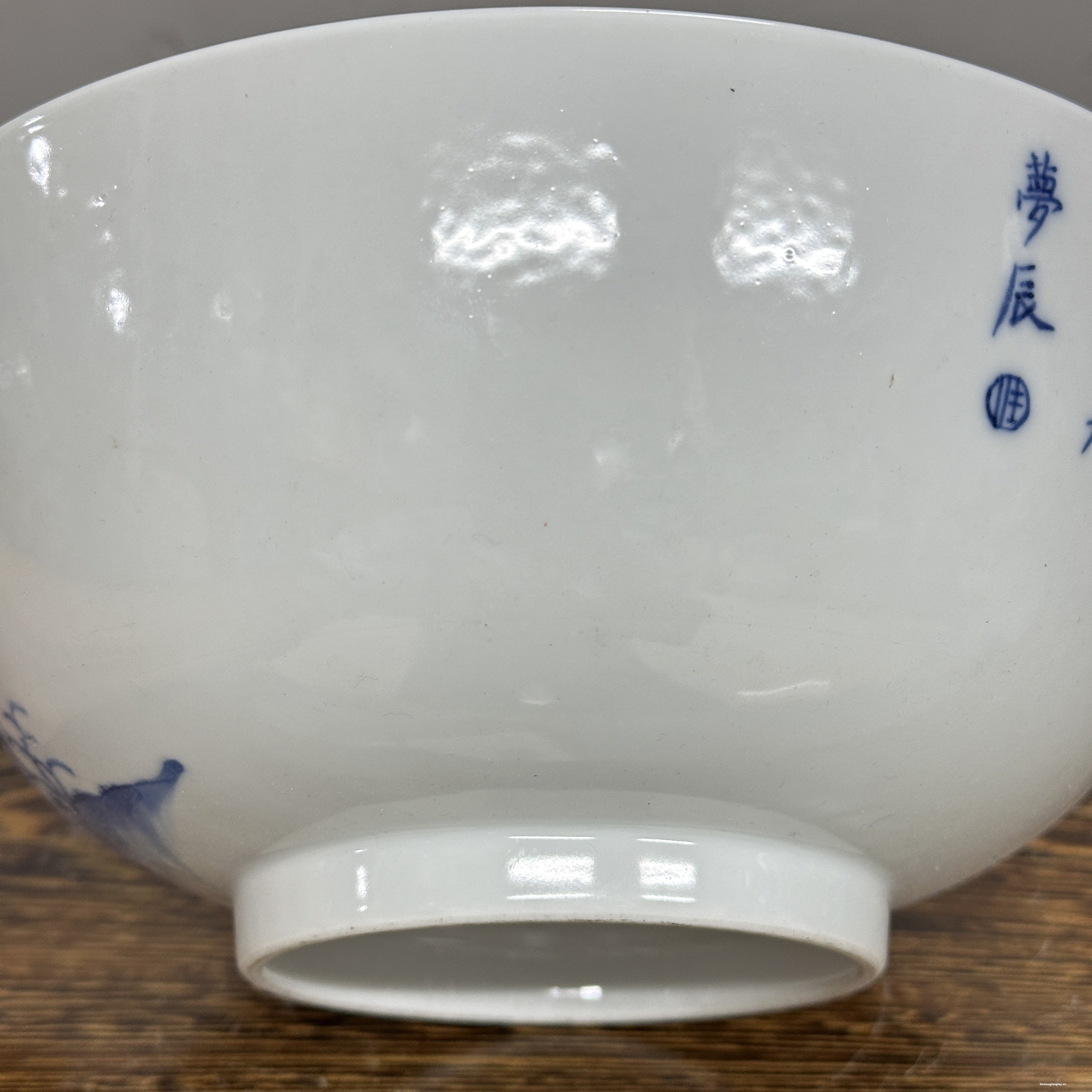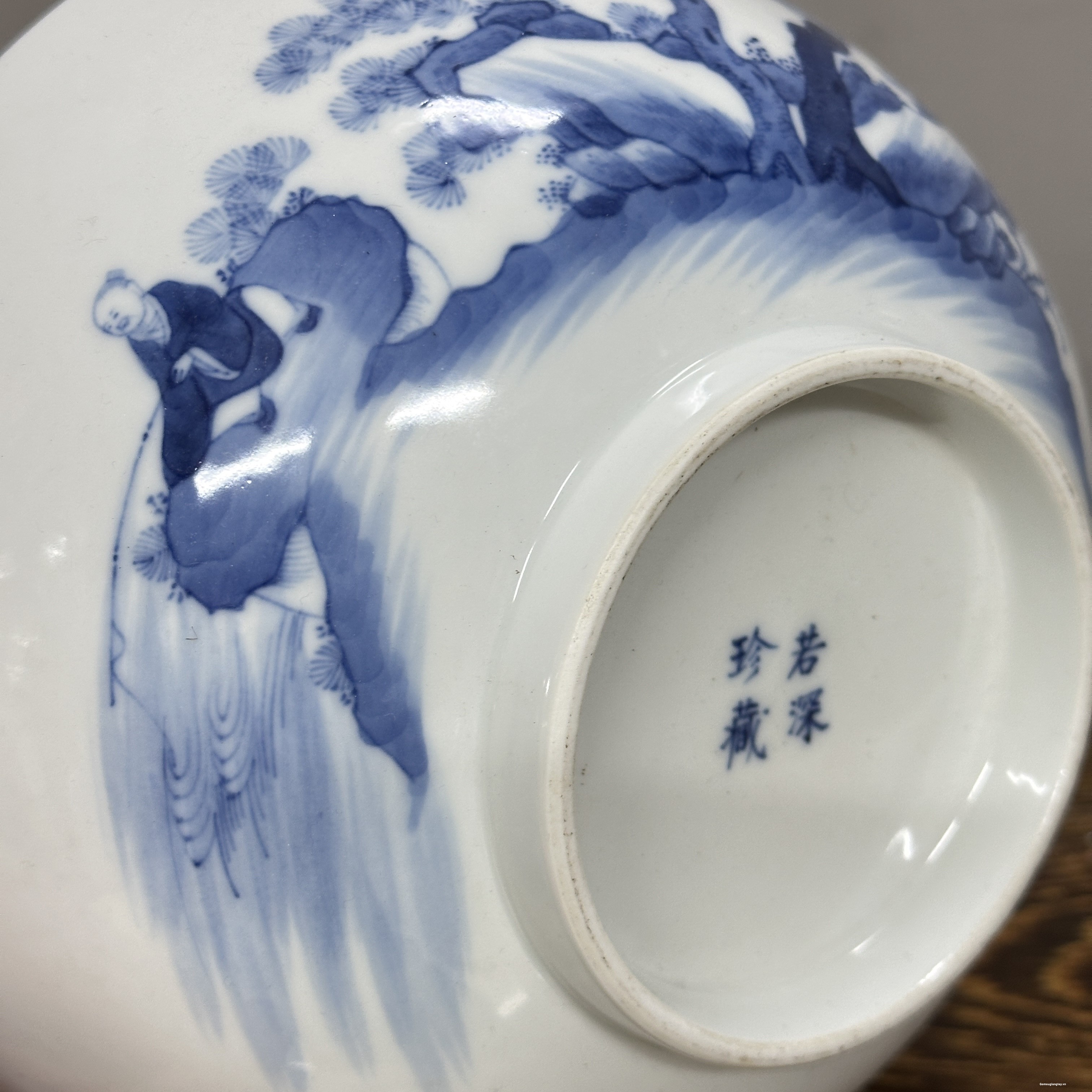 Bát cũ vẽ ngư ông đắc Lợi vẽ tay tơ tóc, men rất đanh.