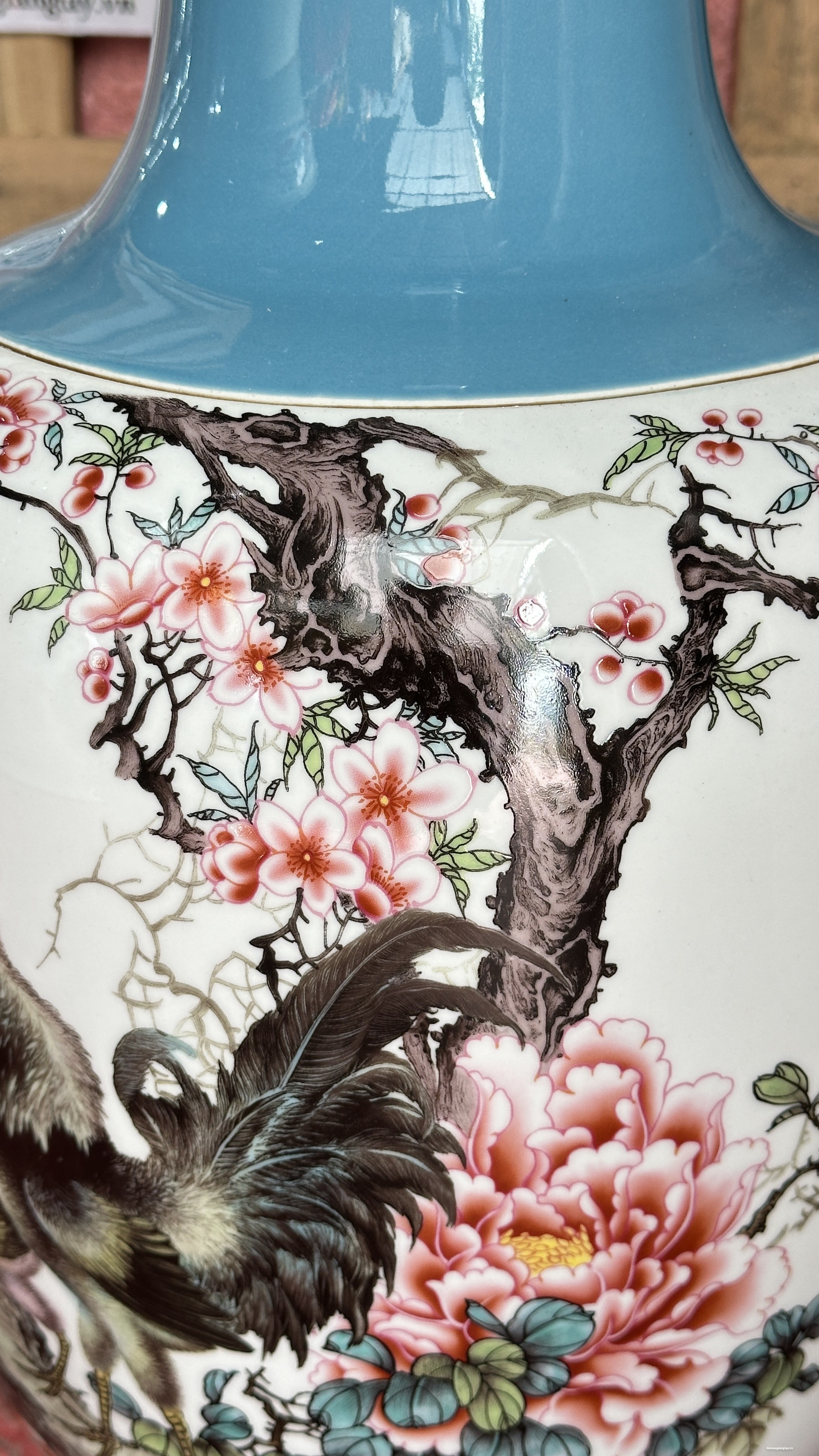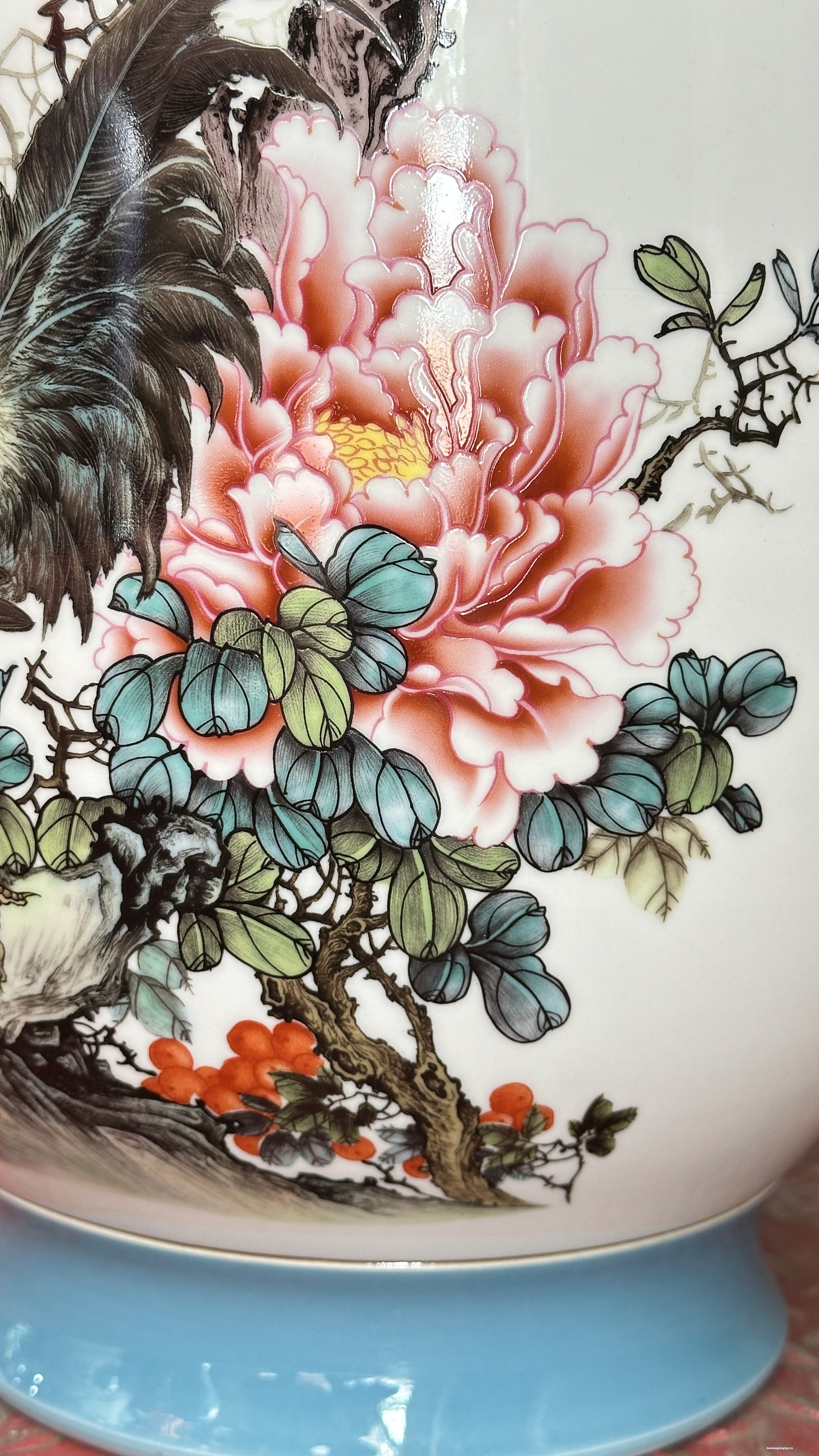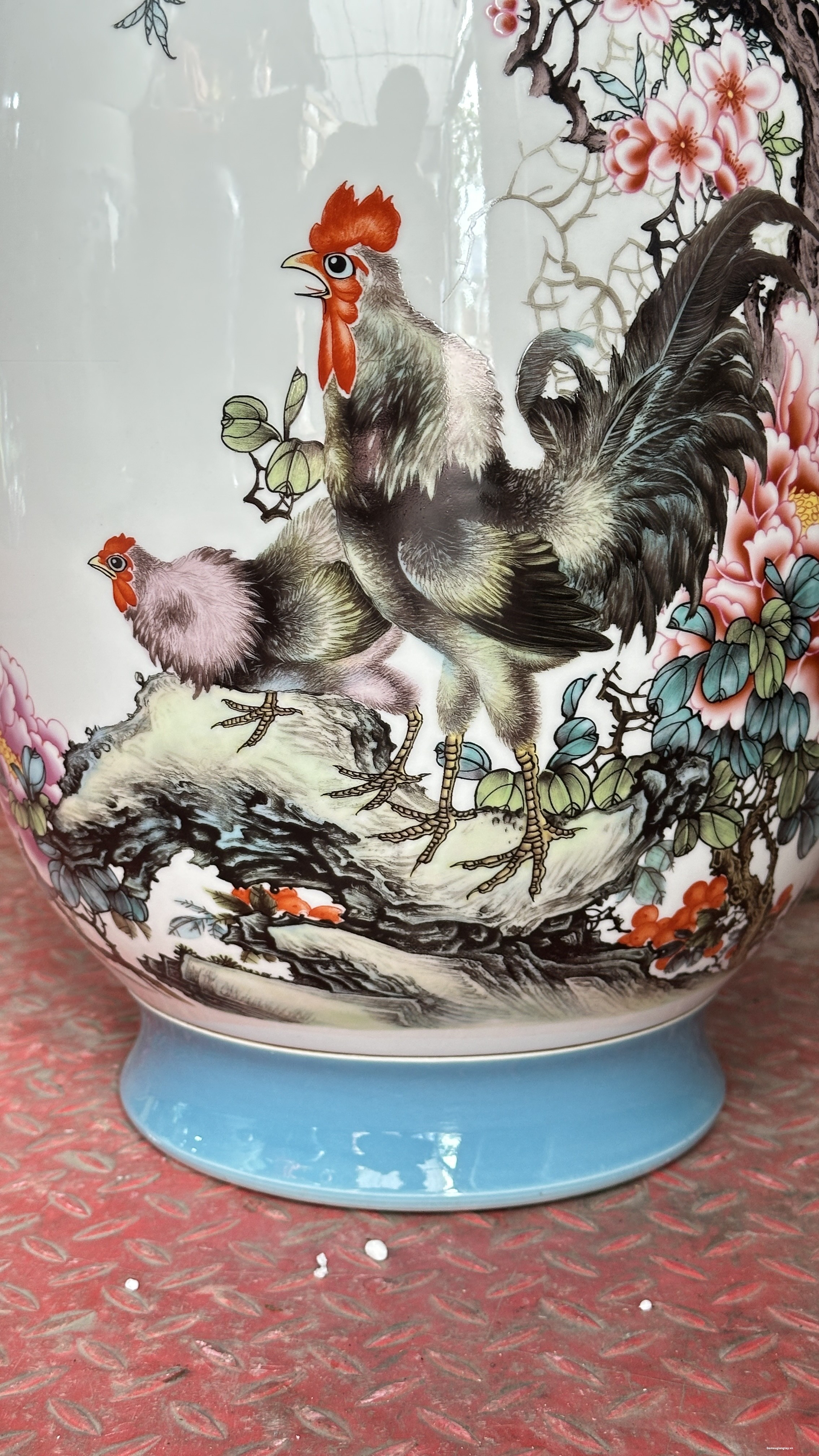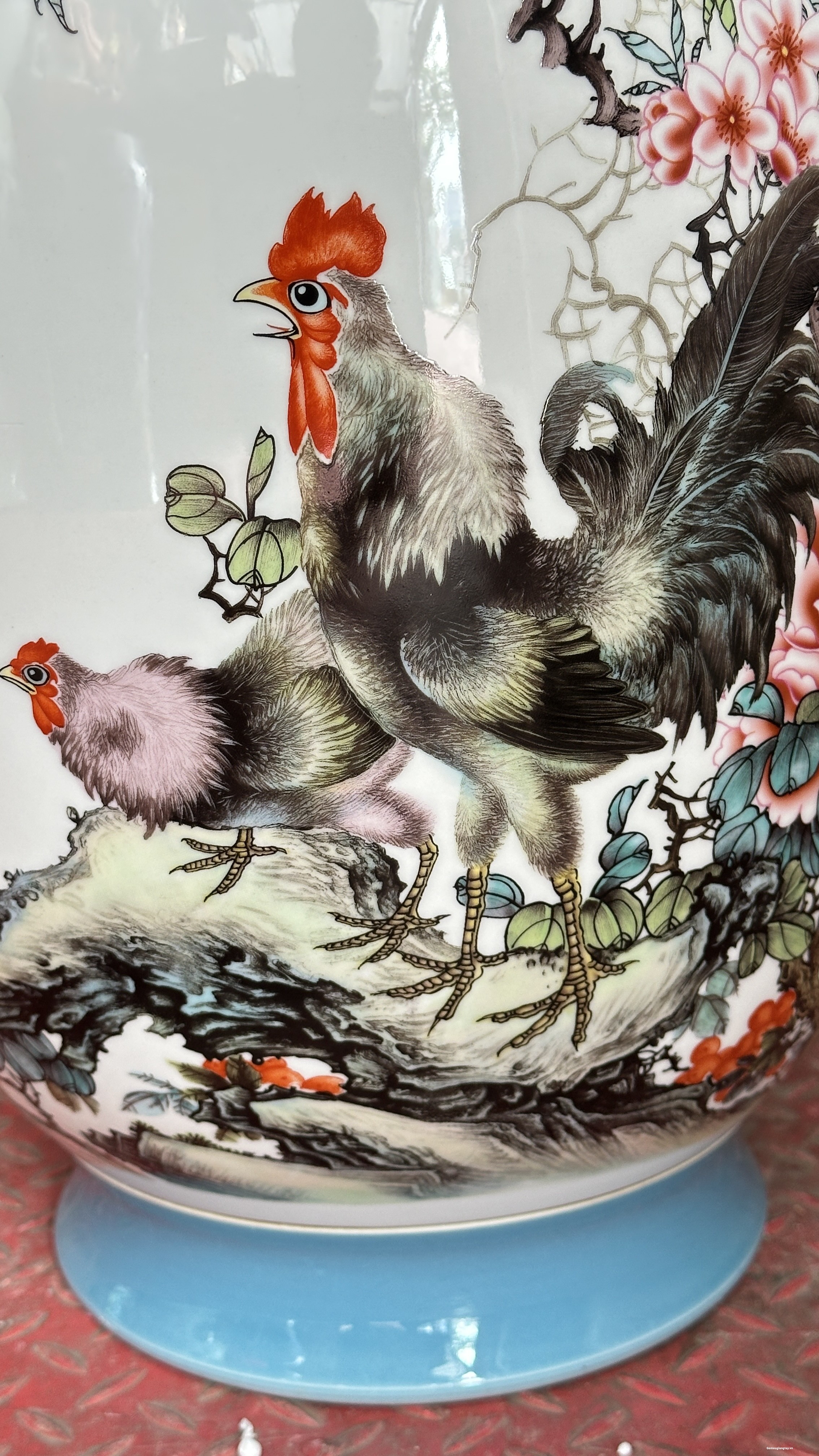 Bình dáng tỏi vẽ cảnh kim kê phú quý bình an may mắn tài lộc.