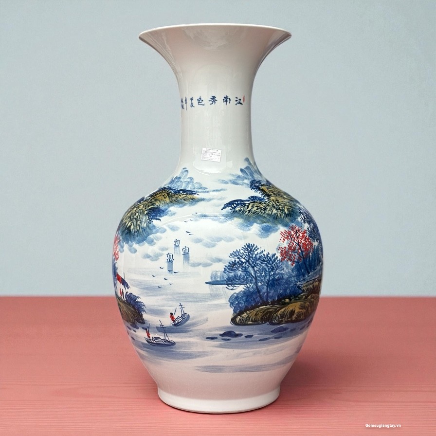 Bình dáng tỏi vẽ tay tứ diện tích sơn thuỷ