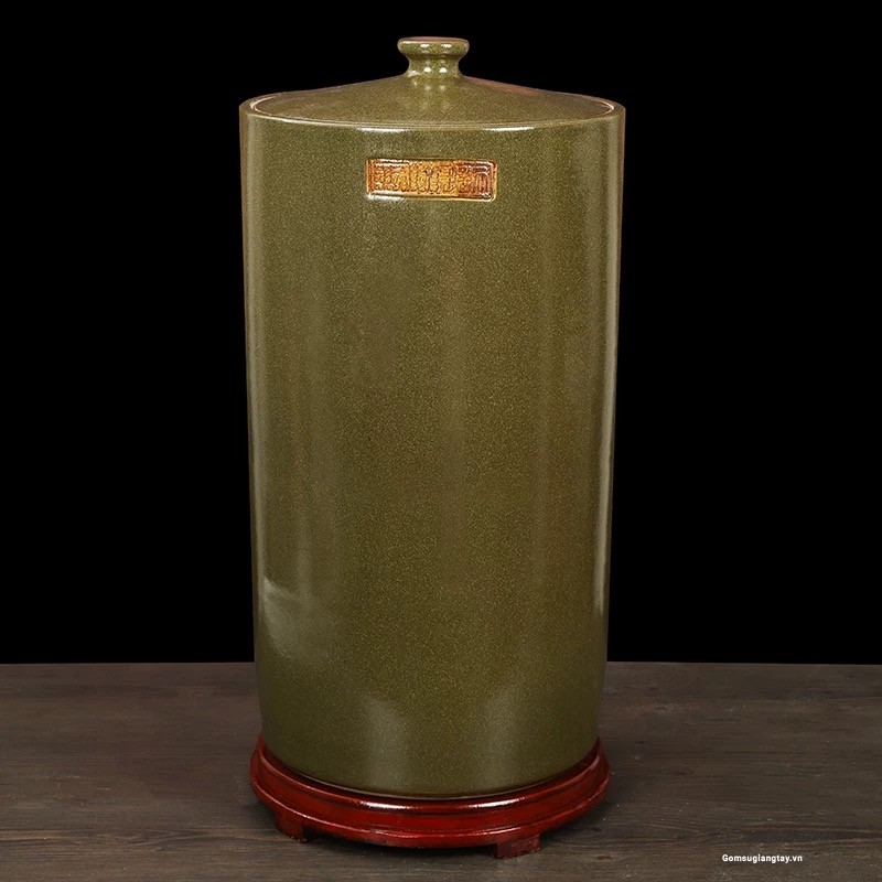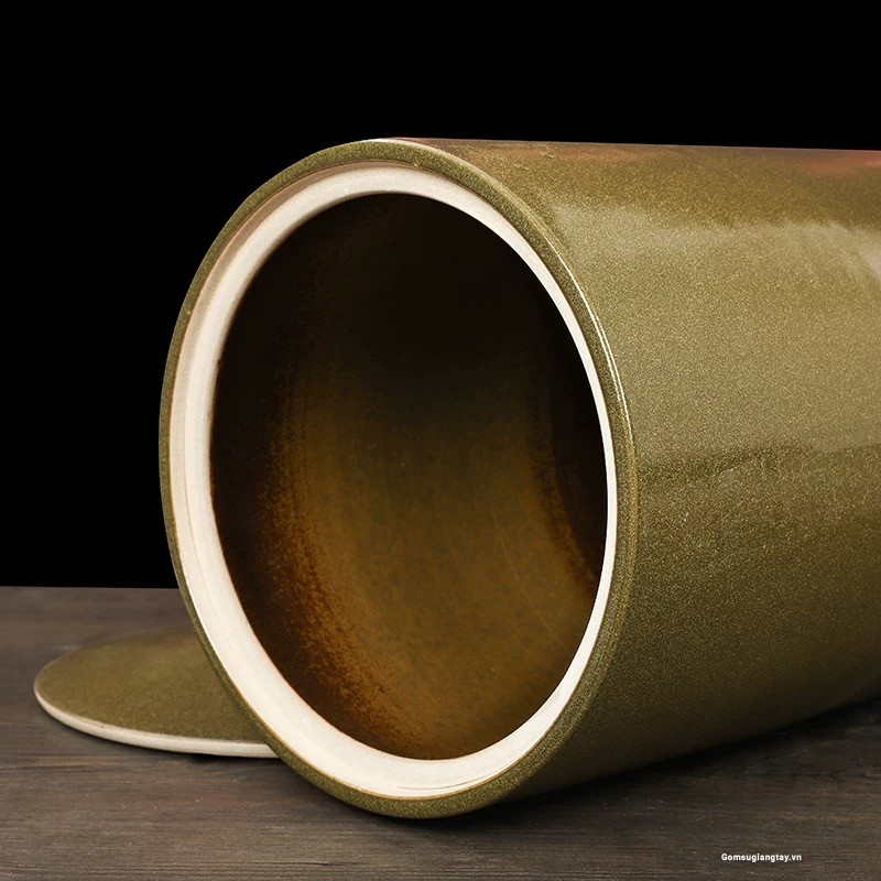 Bình đựng gạo,hũ đựng chè, ngâm rượu, dòng chất men da lươn rất khó nung nung với nhiệt độ 1800 °, cho ra hiệu ứng rất đặc sắc pha màu vàng rêu rất sang.