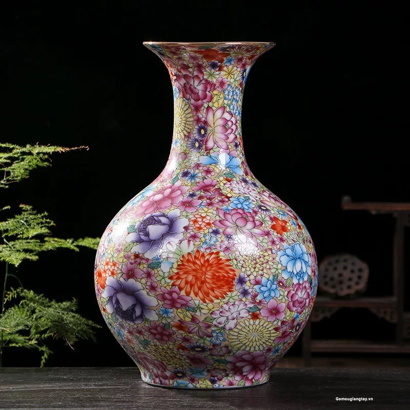 • Bình tỏi vẽ bách hoa cao 36