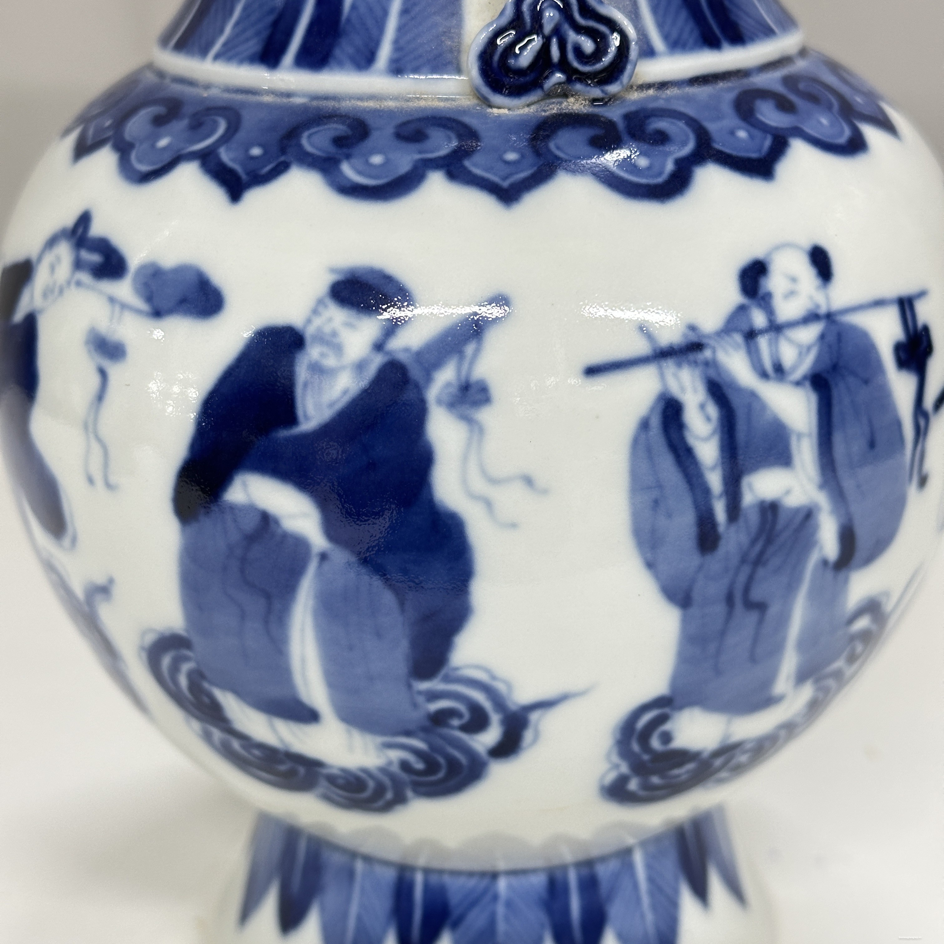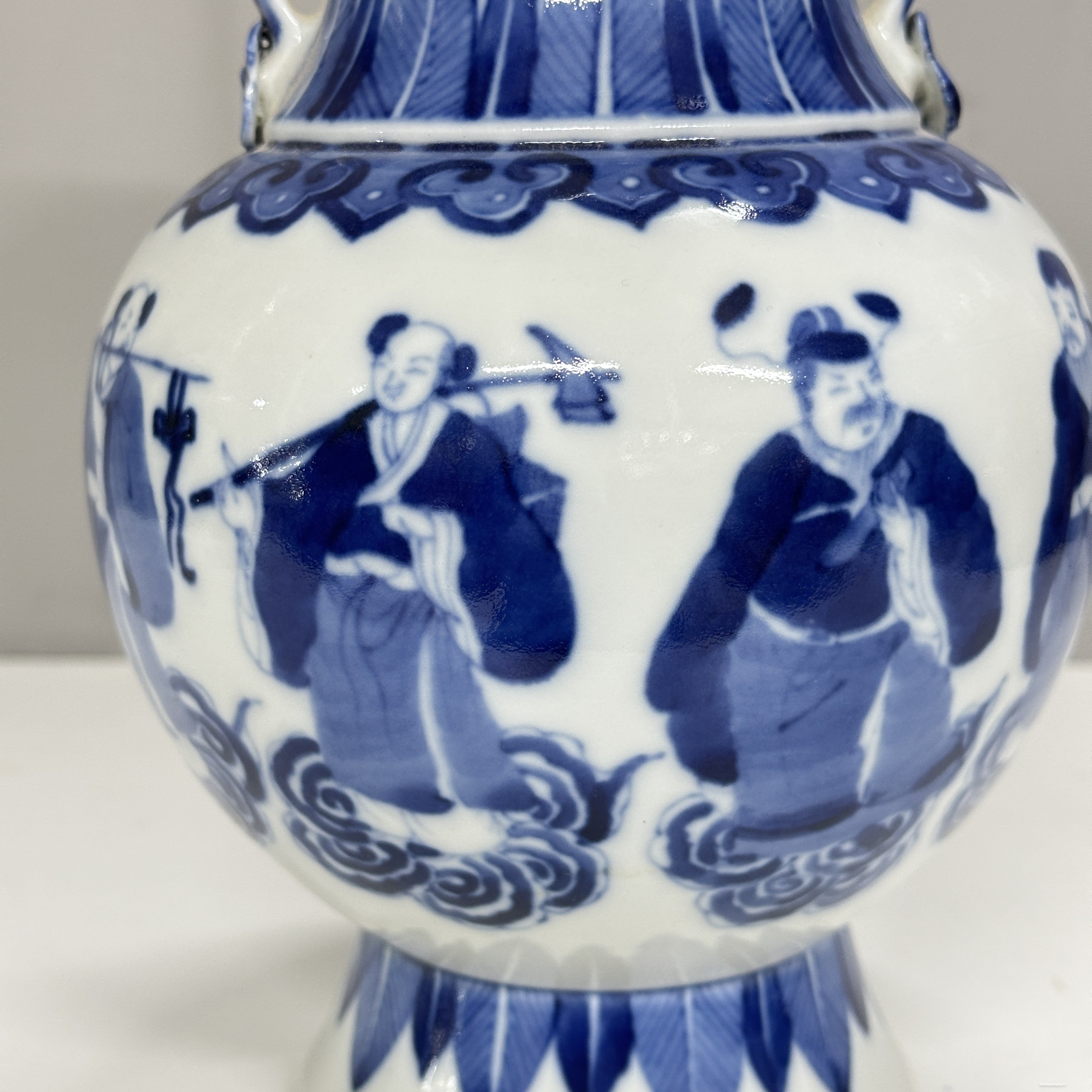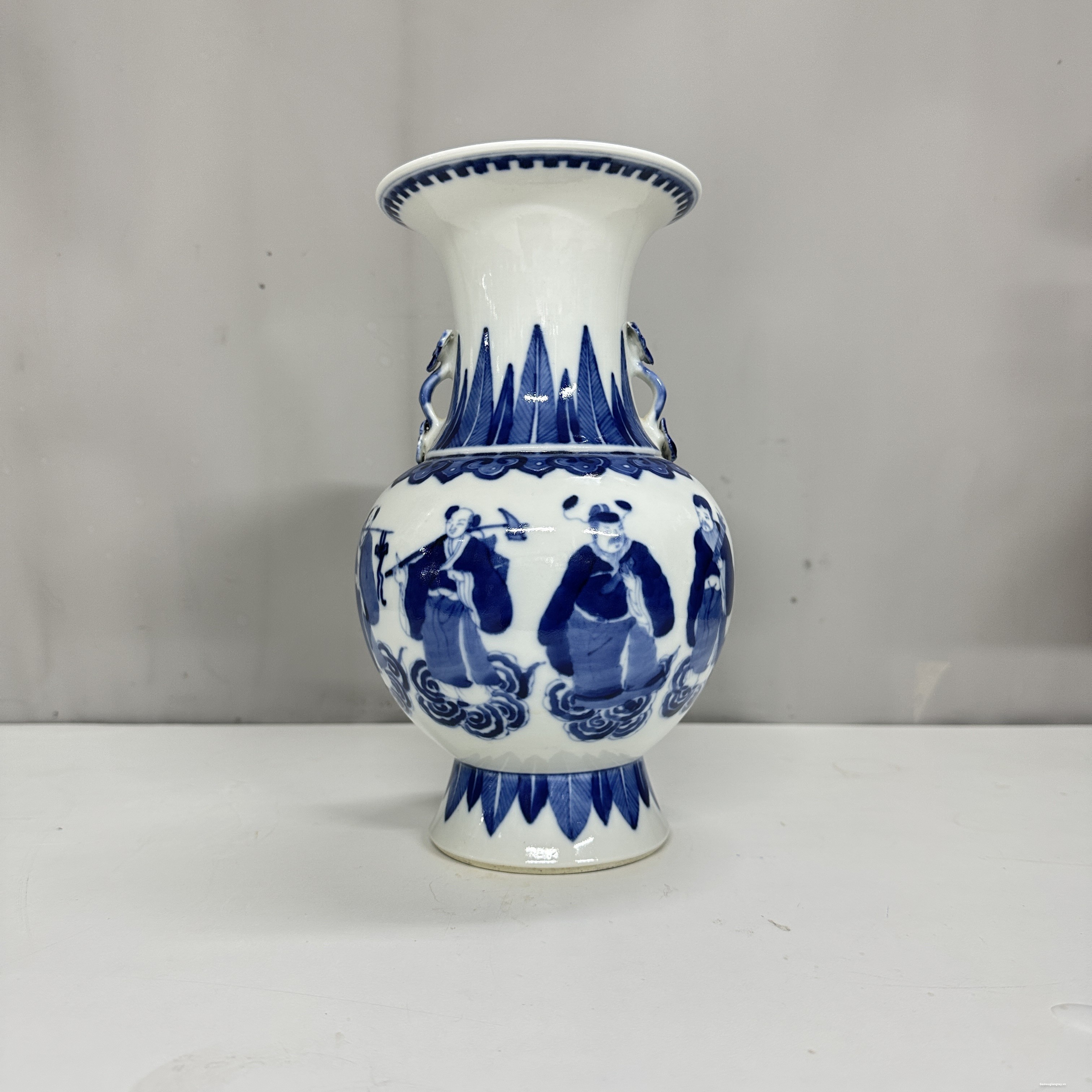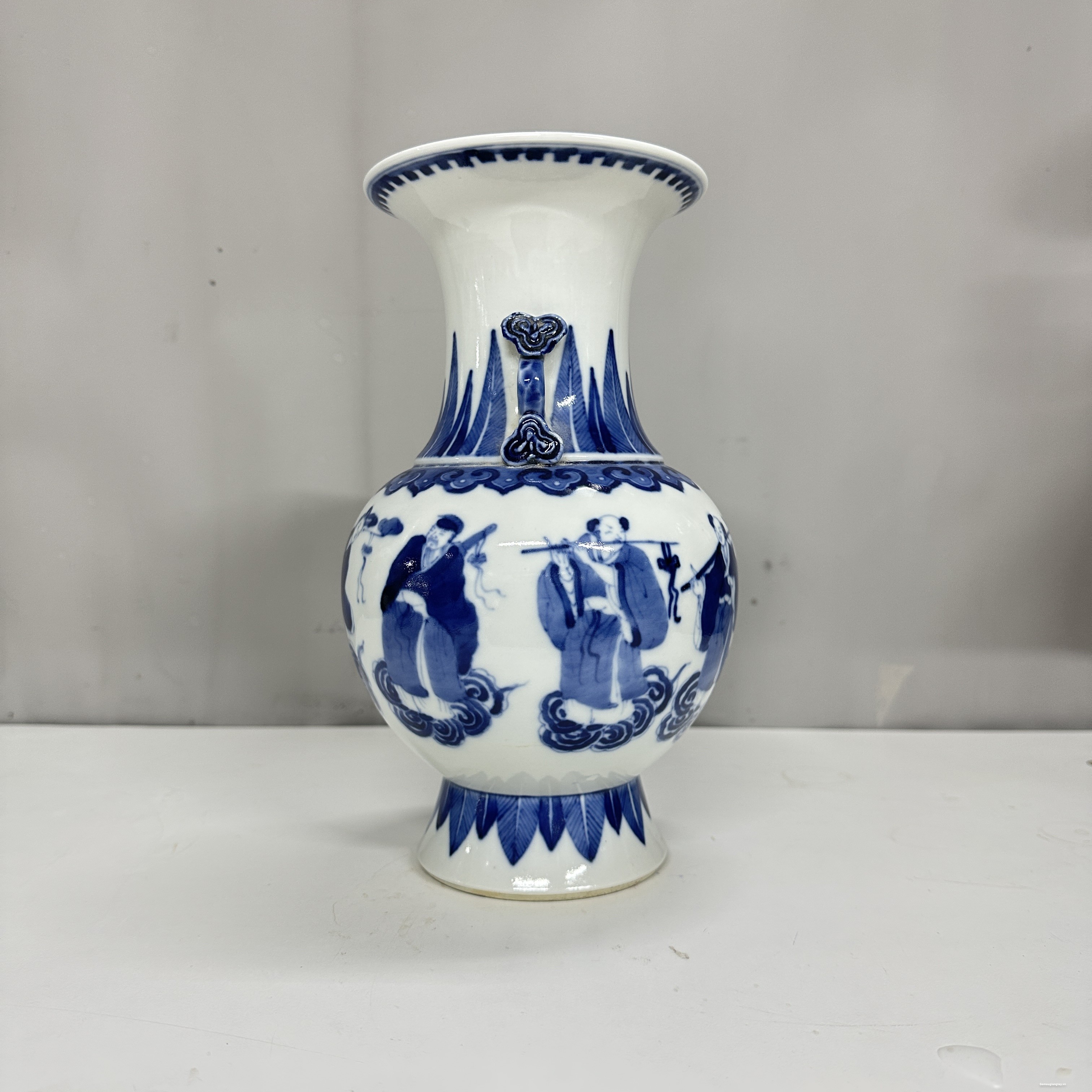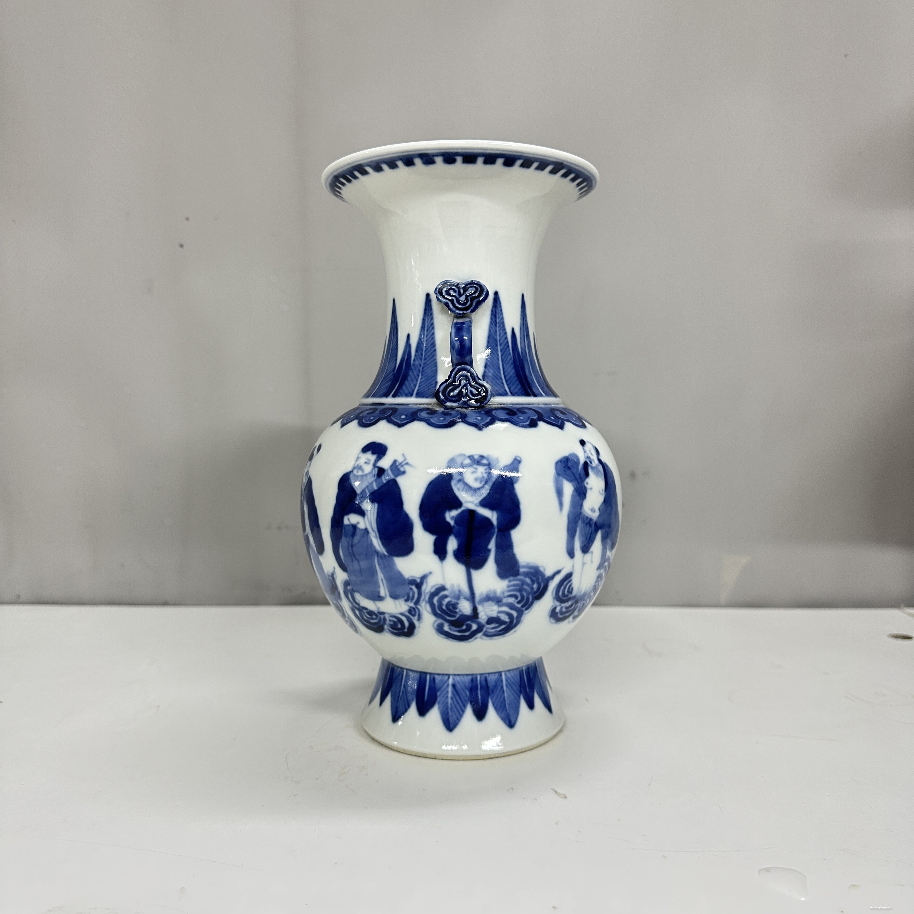 Bình vẽ tay nông củi tích Bát tiên đồ chôn cốt cực kỳ già đồ vẽ tơ tóc, hai bên có điểm hai cái gậy như ý làm tai cực đẹp, Mỏng nhẹ men cao lanh cũ
