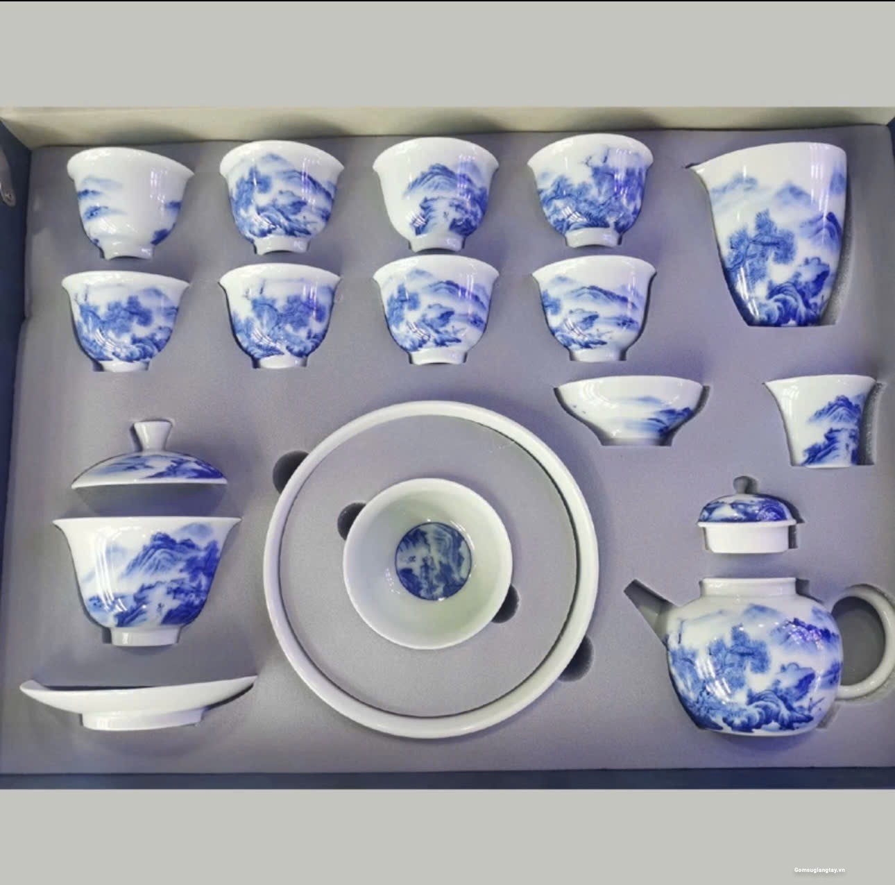 Bộ ấm chén hàng cao cấp vẽ tay mình làm vẽ tích sơn thủy hiếu tình, rất đẹp sang trọng