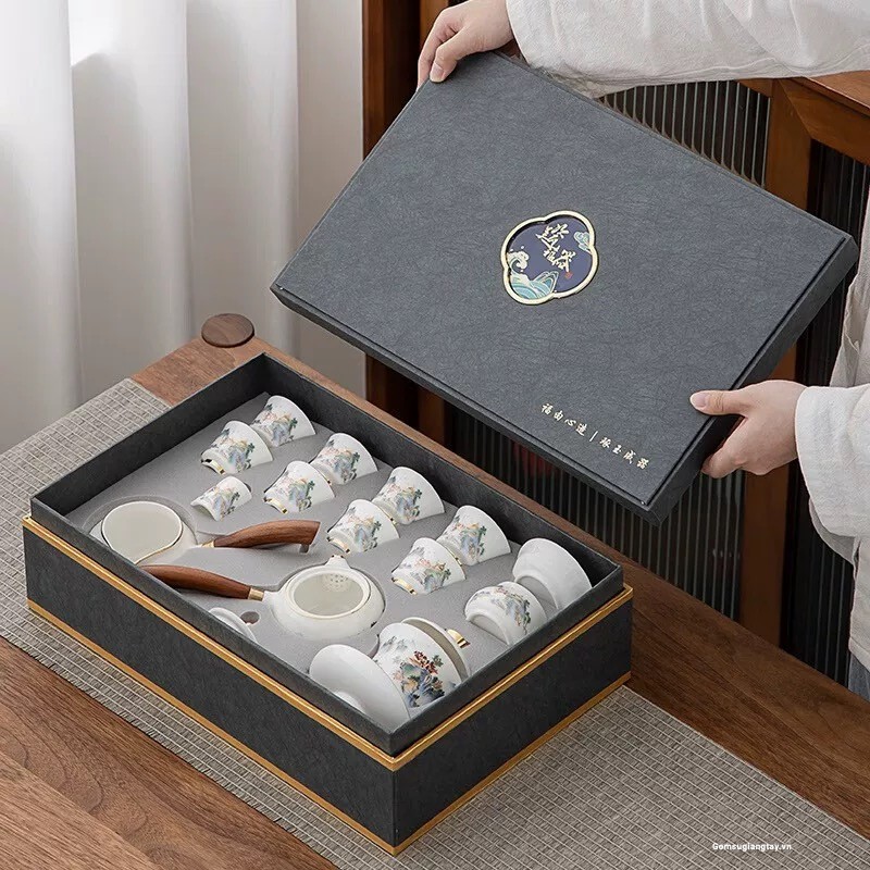 Bôn ấm chén hàng nghệ nhân vẽ tay viền vàng 24k rất đẹp tinh xảo, gốm có bộ nhỏ như hình