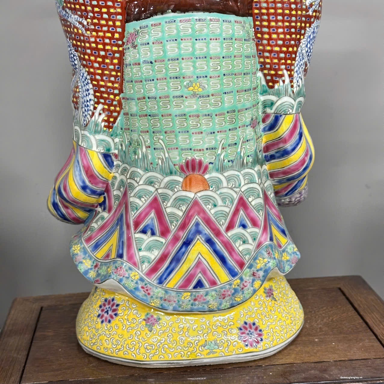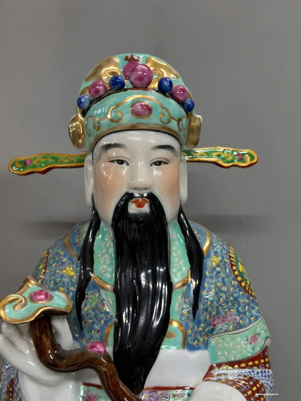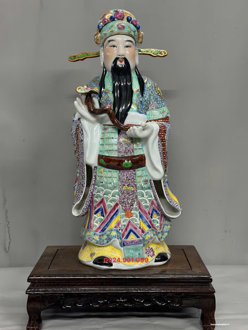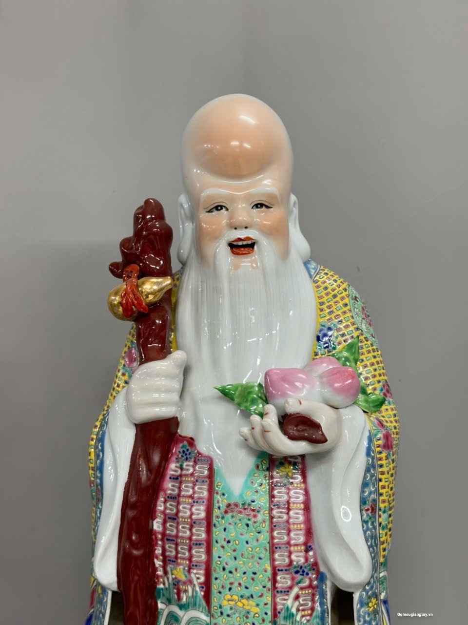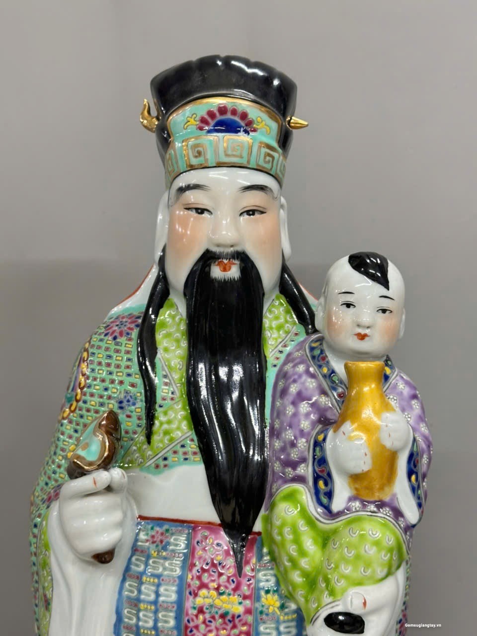 Bộ tượng Tam Đa phúc lộc Thọ áo gấm rất đẹp, nung với nhiệt độ cao 1800 ° hàng áo vẽ tay rất kỳ công.