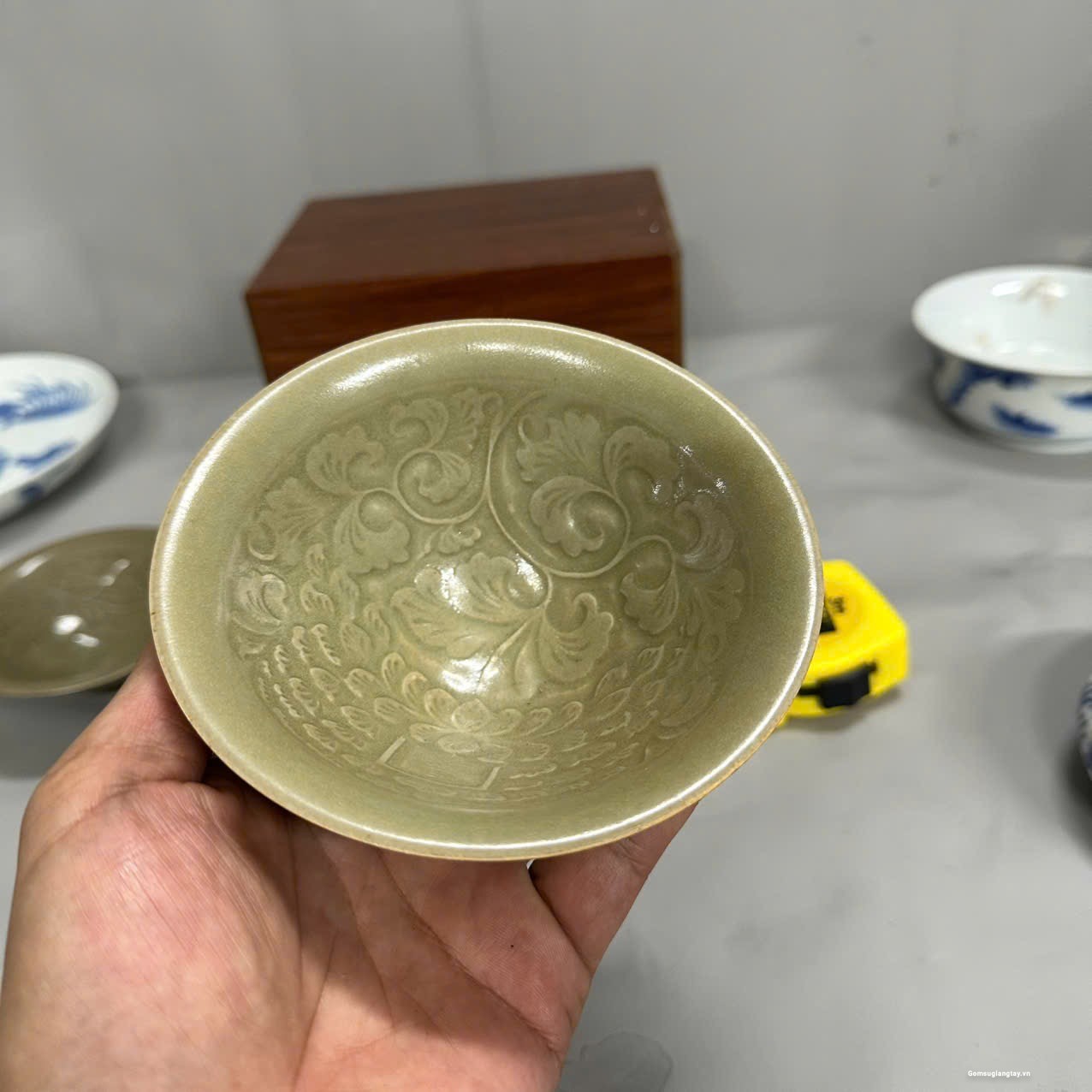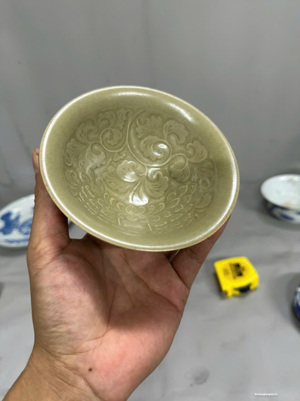 Chén tống dạng nón, vẽ tay nung củi hàng kỹ thuật cao, chôn và cốt cực kỳ già đồ.