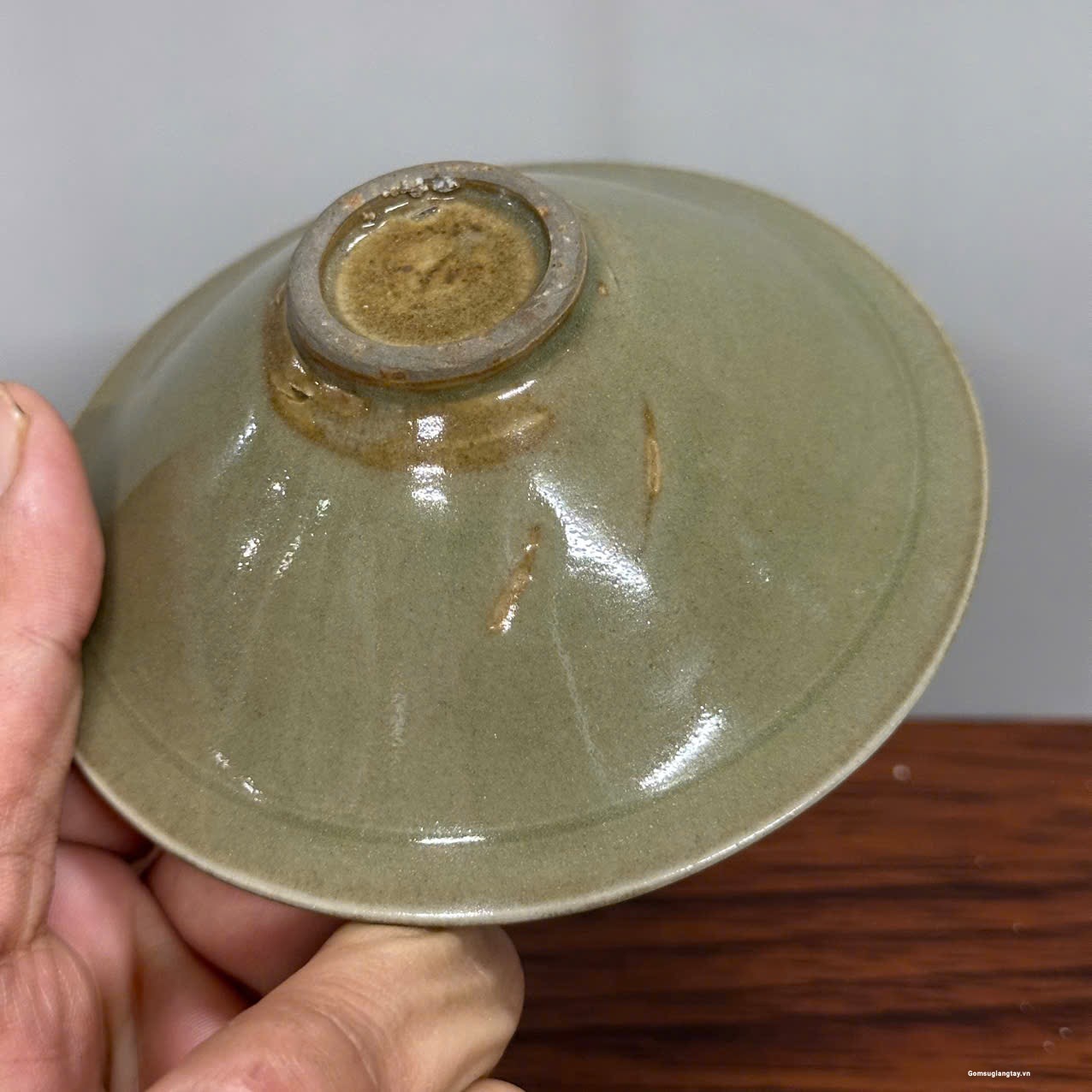 Chén tống dạng nón, vẽ tay nung củi hàng kỹ thuật cao, chôn và cốt cực kỳ già đồ.