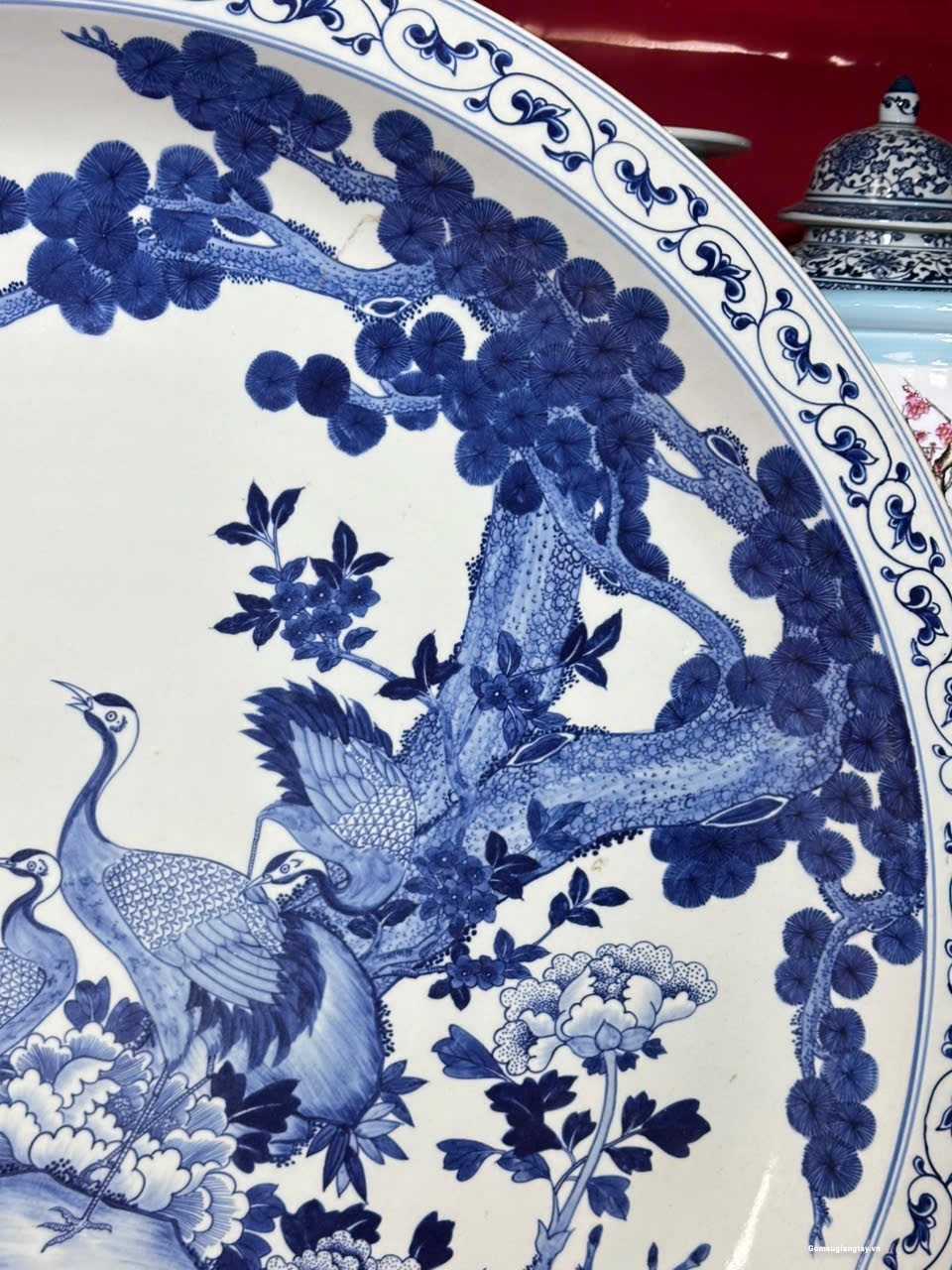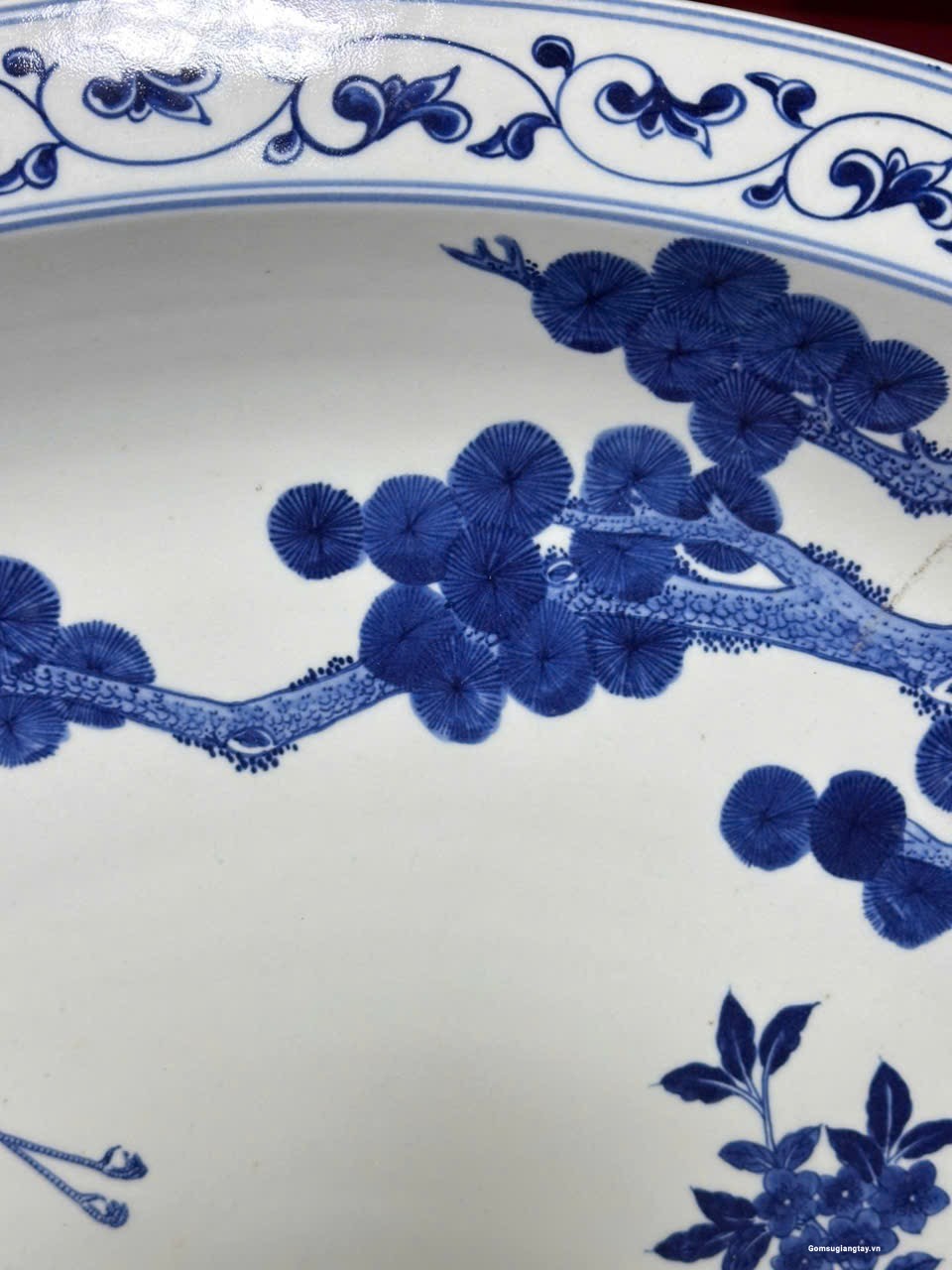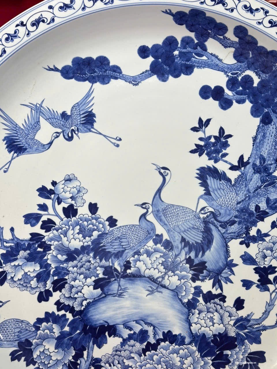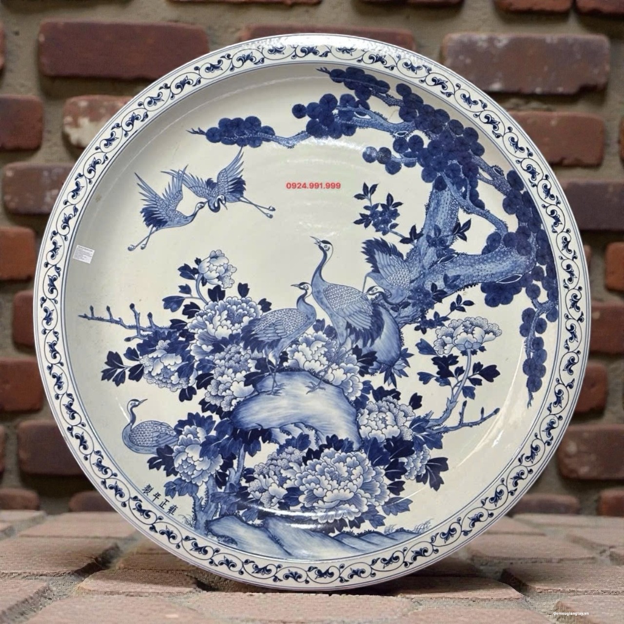 Đĩa sứ giả cổ vẽ tay, tùng hạc vẽ rất tỉ mỉ đẹp bền.