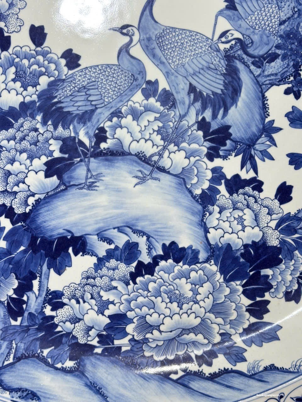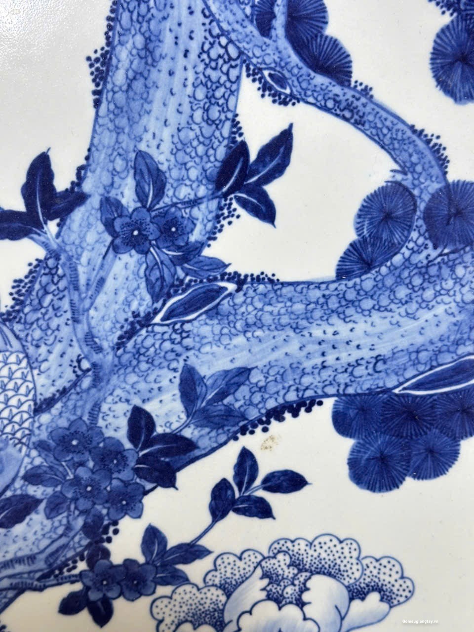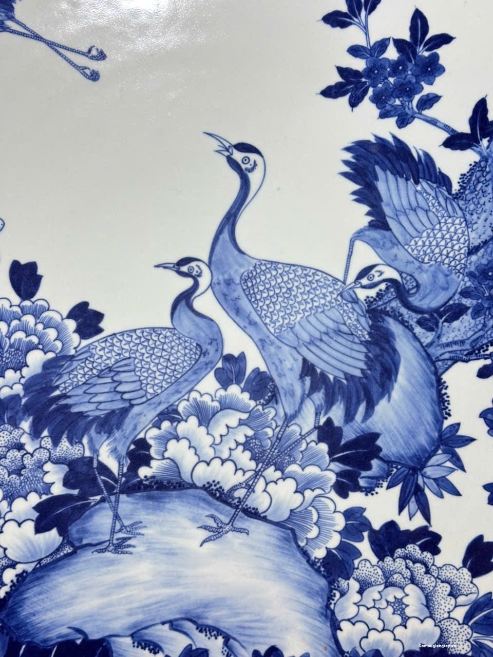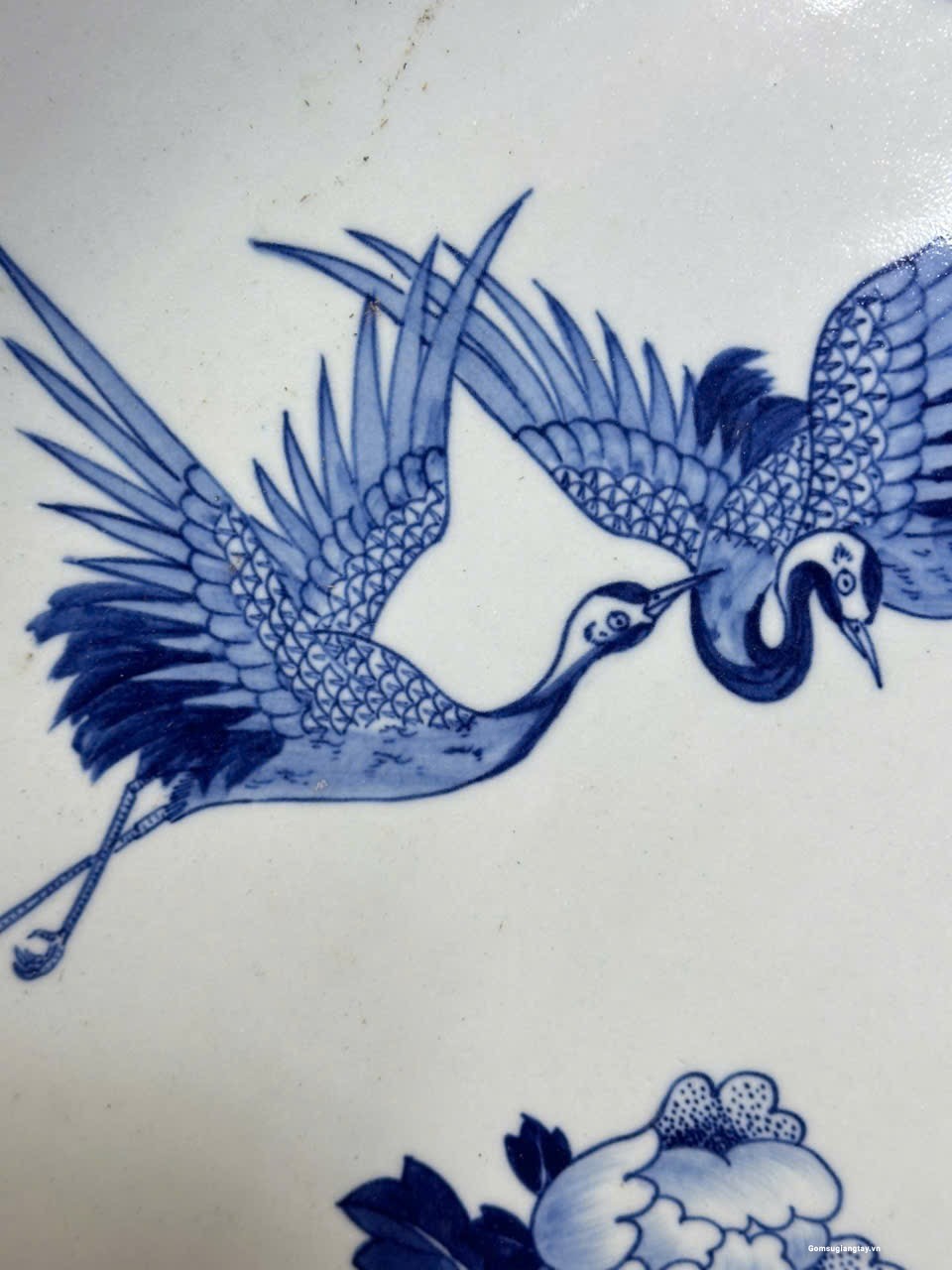 Đĩa sứ giả cổ vẽ tay, tùng hạc vẽ rất tỉ mỉ đẹp bền.