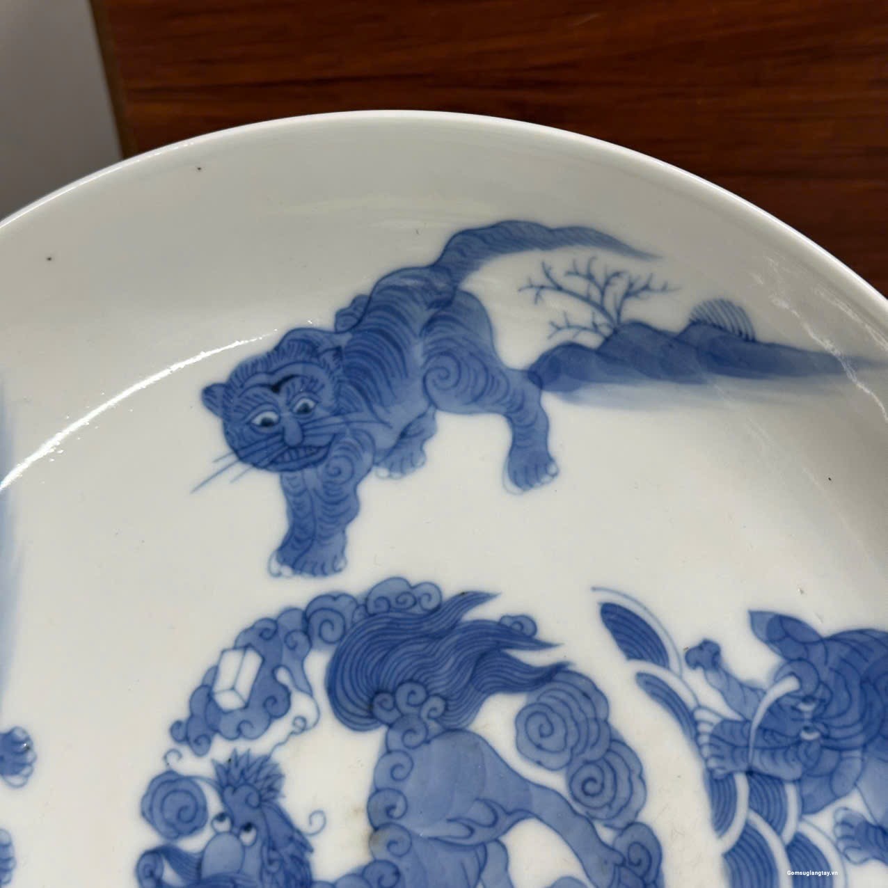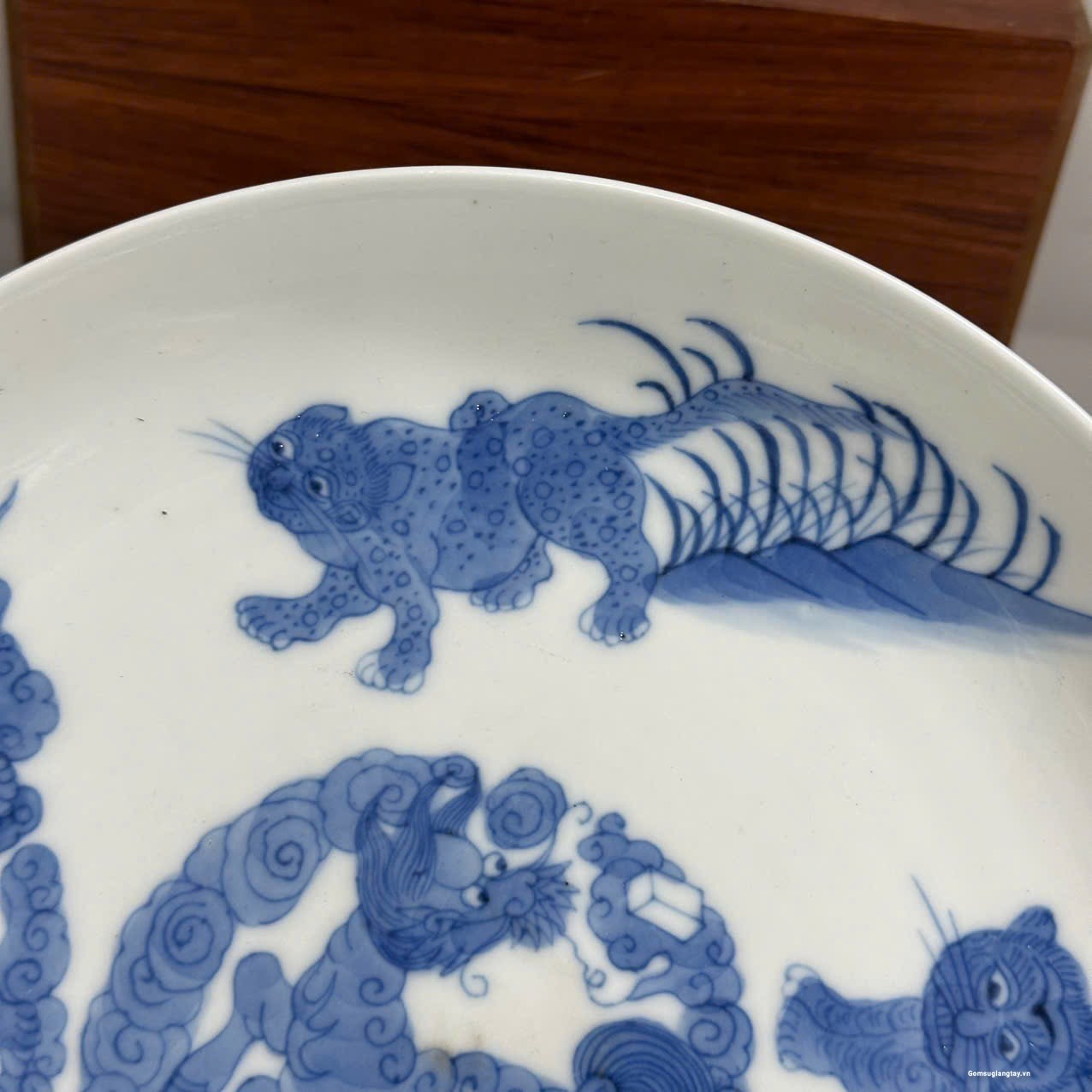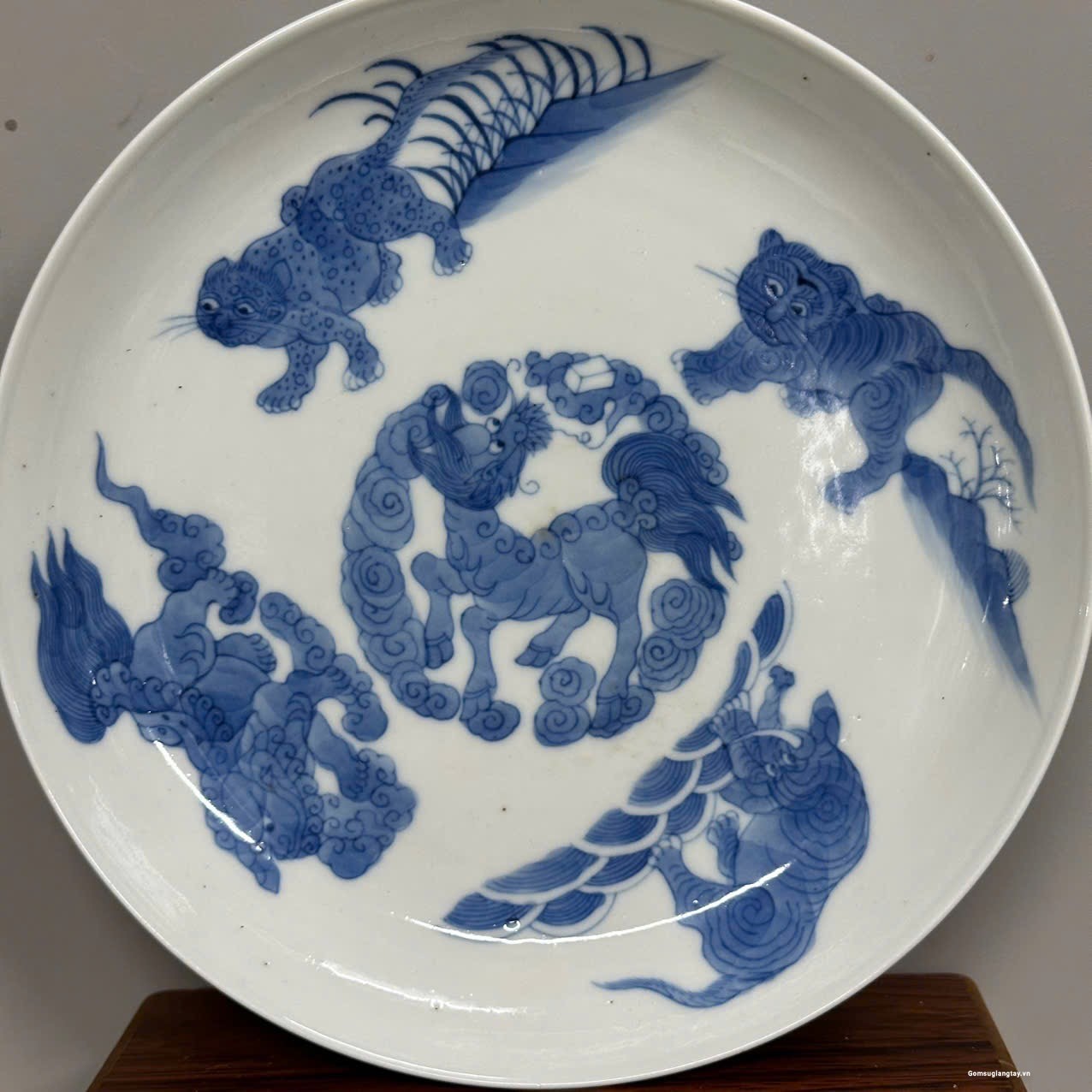 Đĩa tứ linh cũ, vẽ tay nung củi hàng kỹ thuật cao, chôn và cốt cực kỳ già đồ.