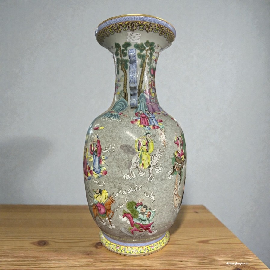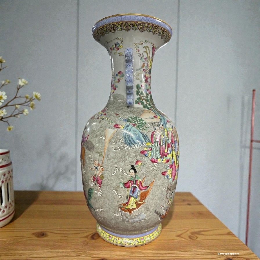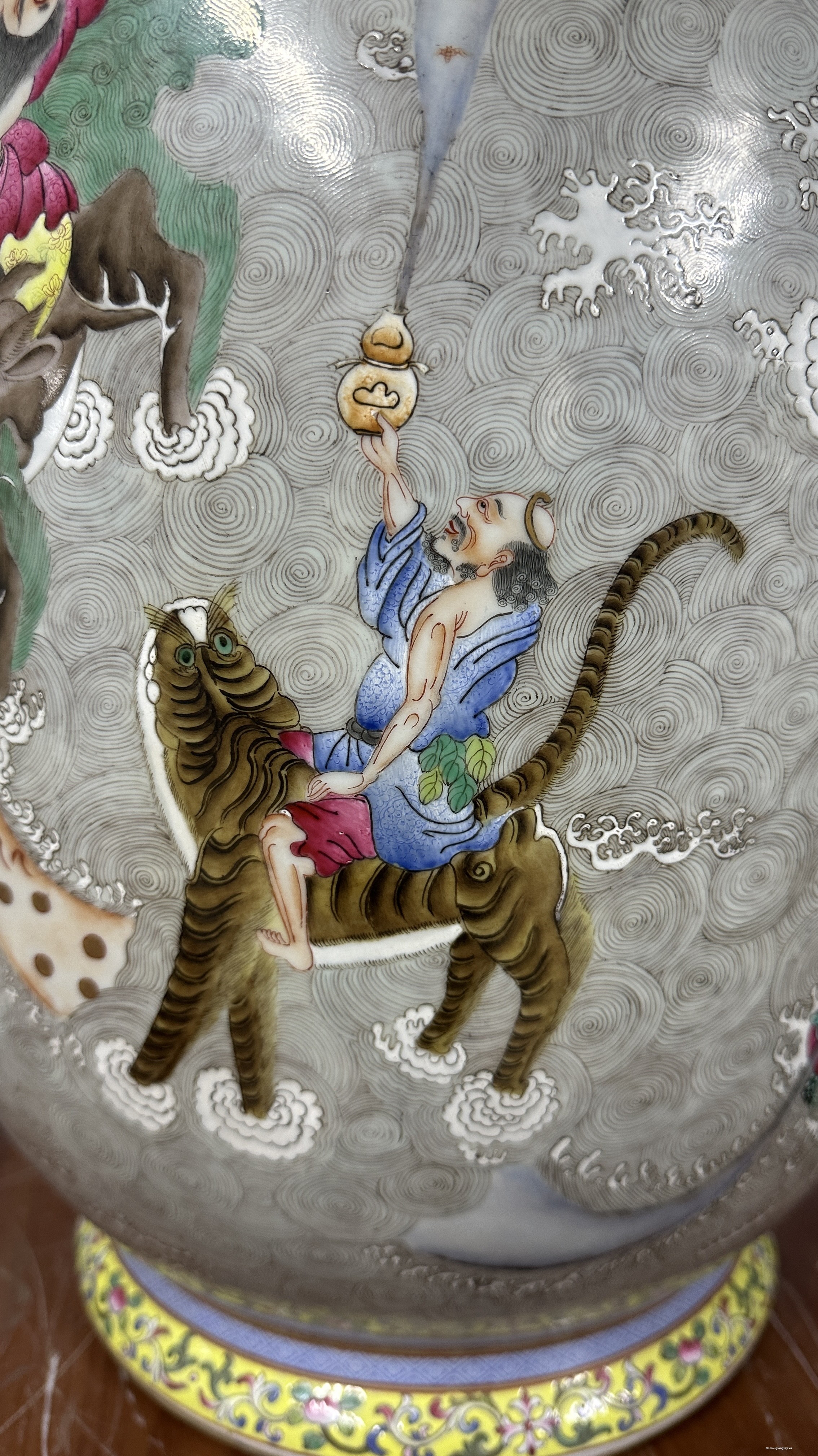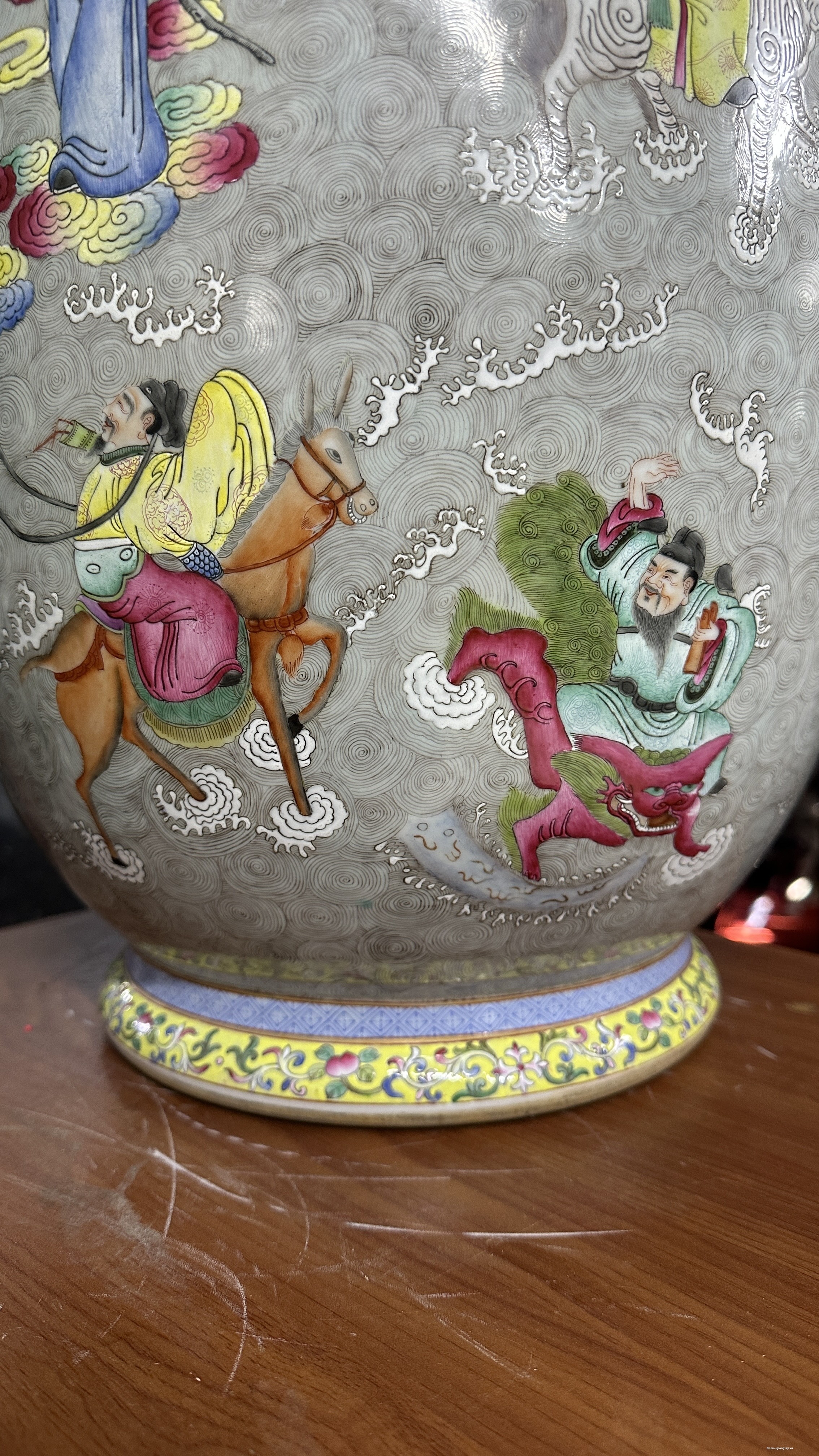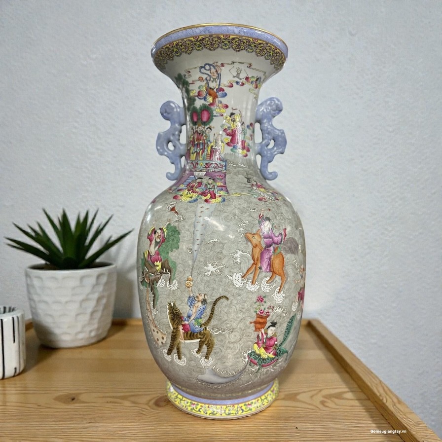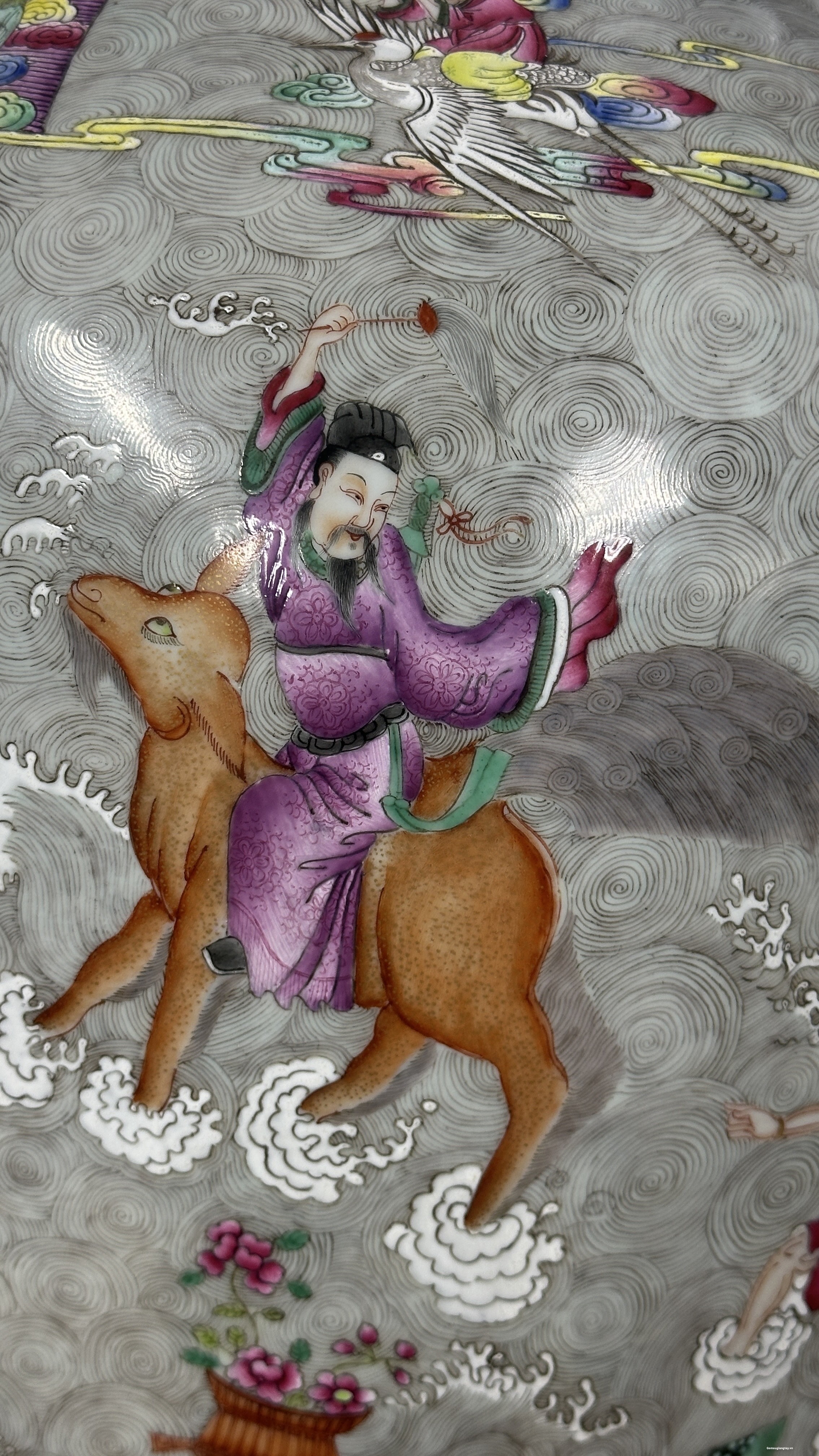 Độc bình cũ vẽ hội quần tiên du xuân tơ tóc , vẽ tay nung củi hàng kỹ thuật cao, chôn và cốt già đồ.
