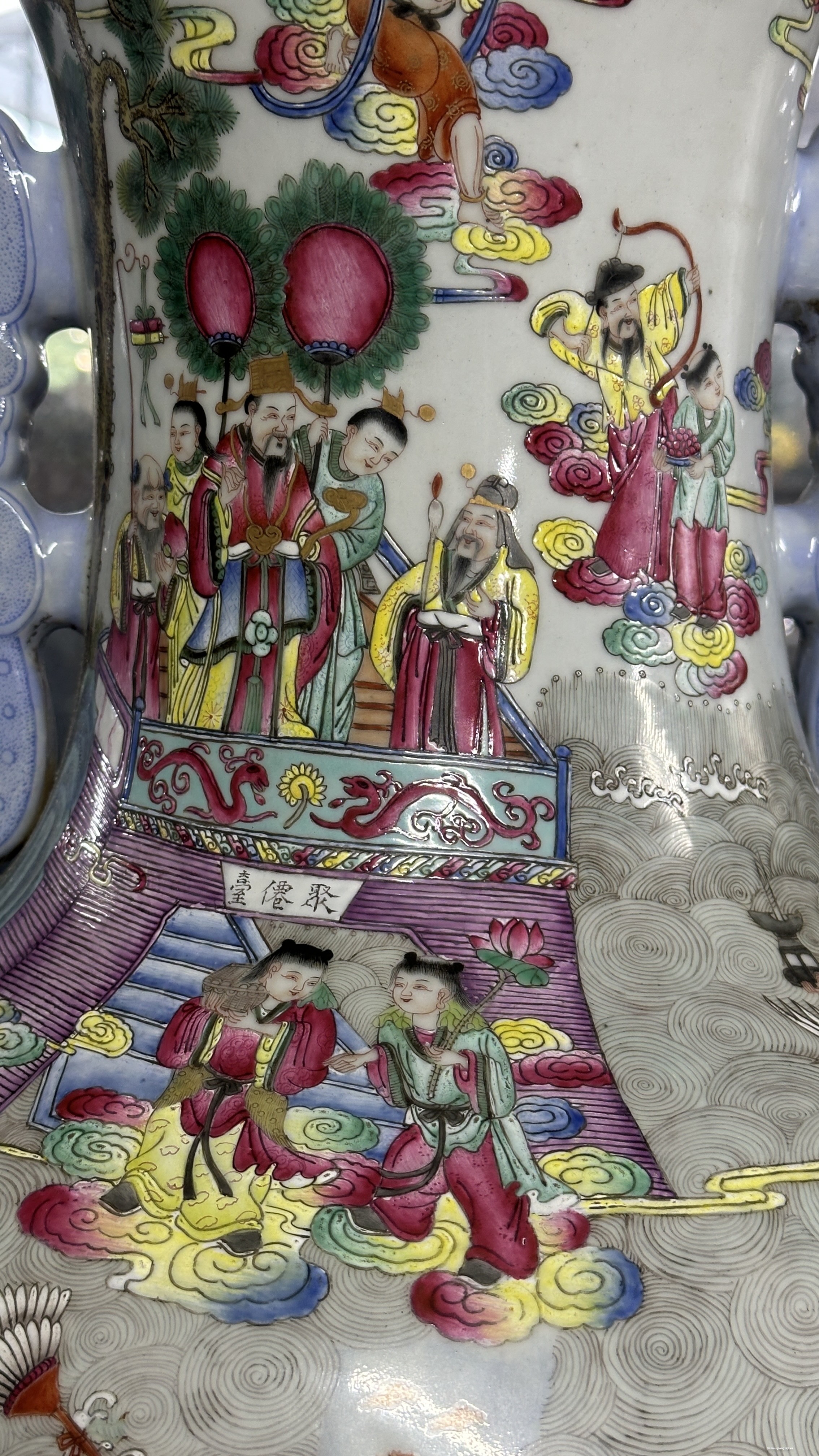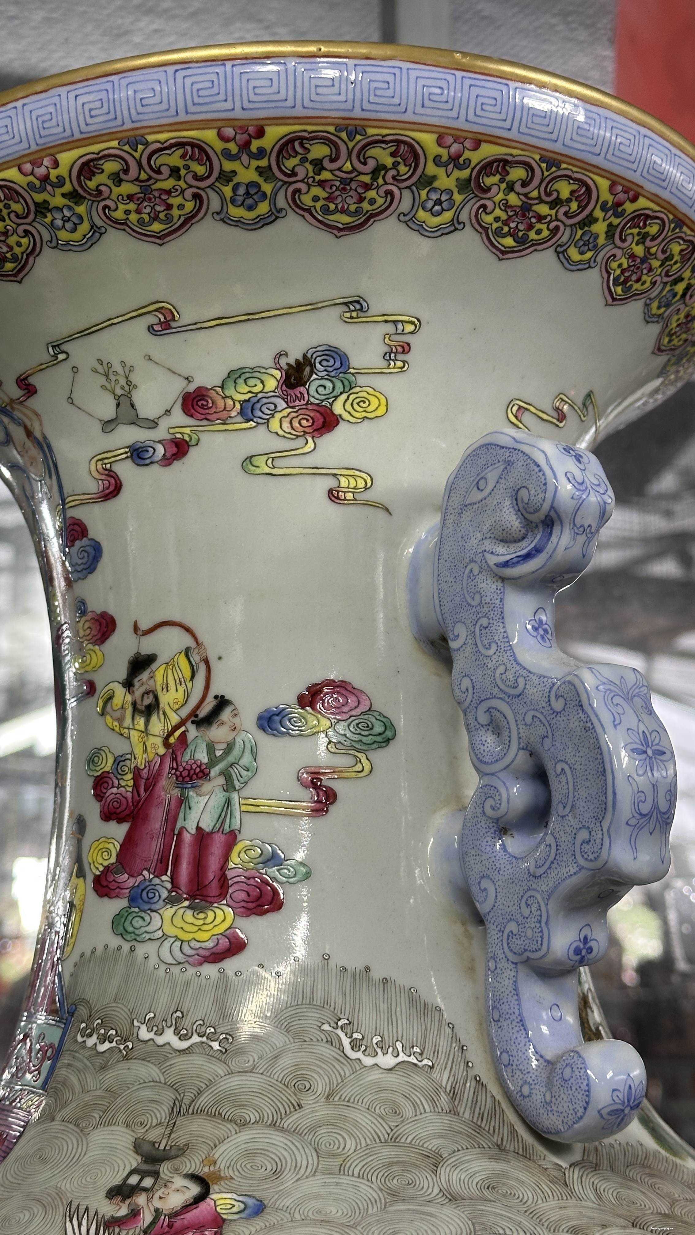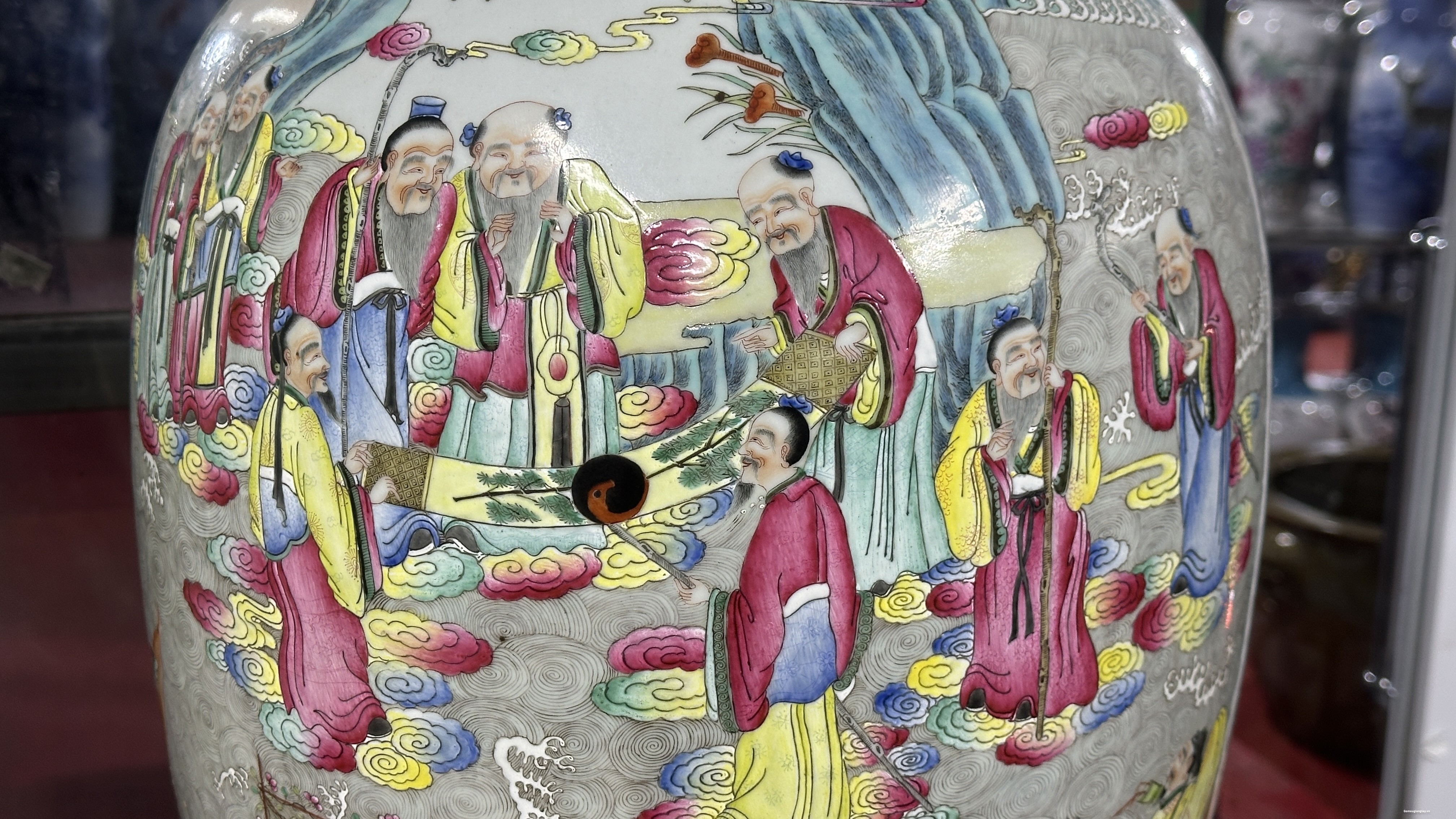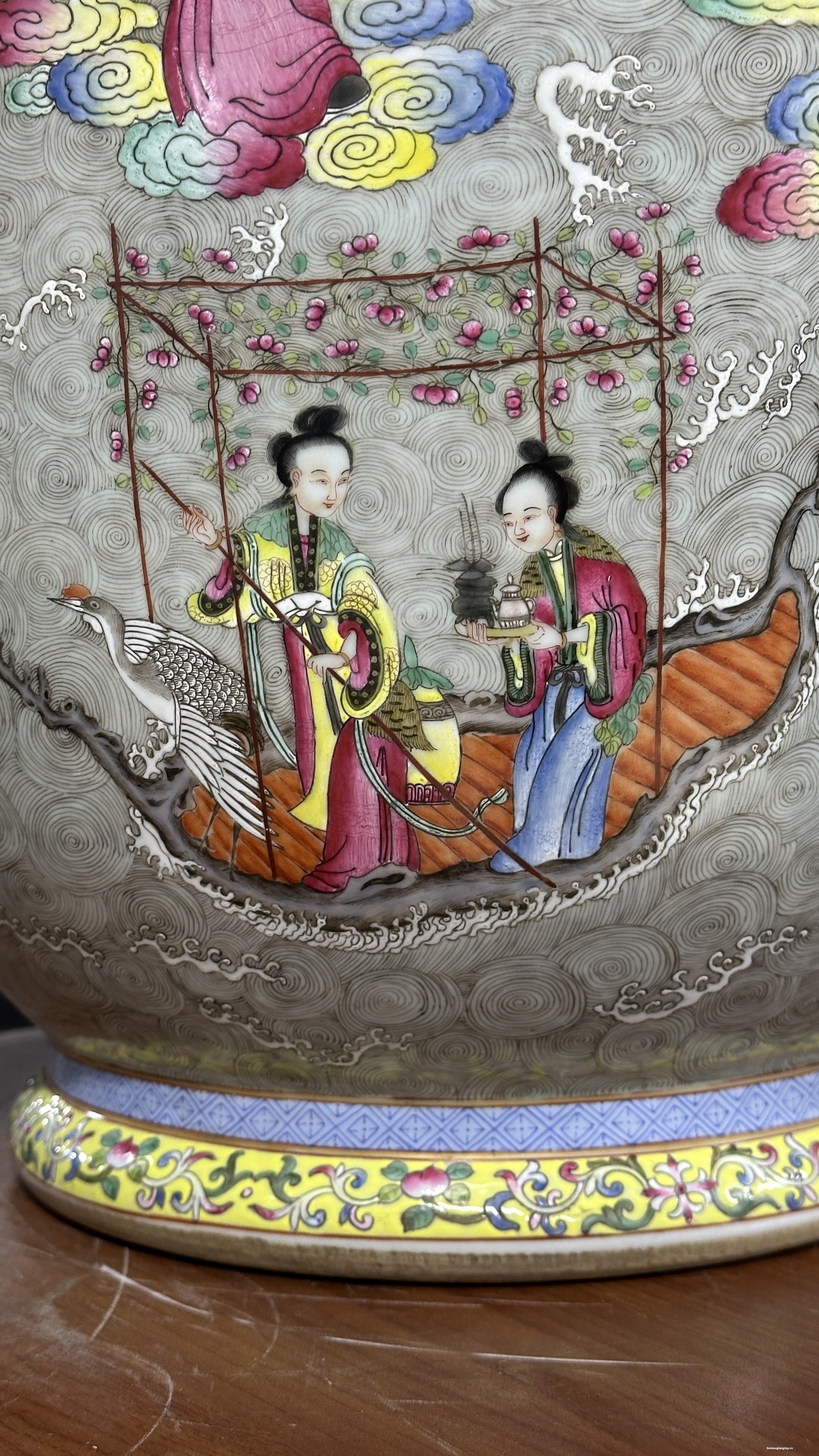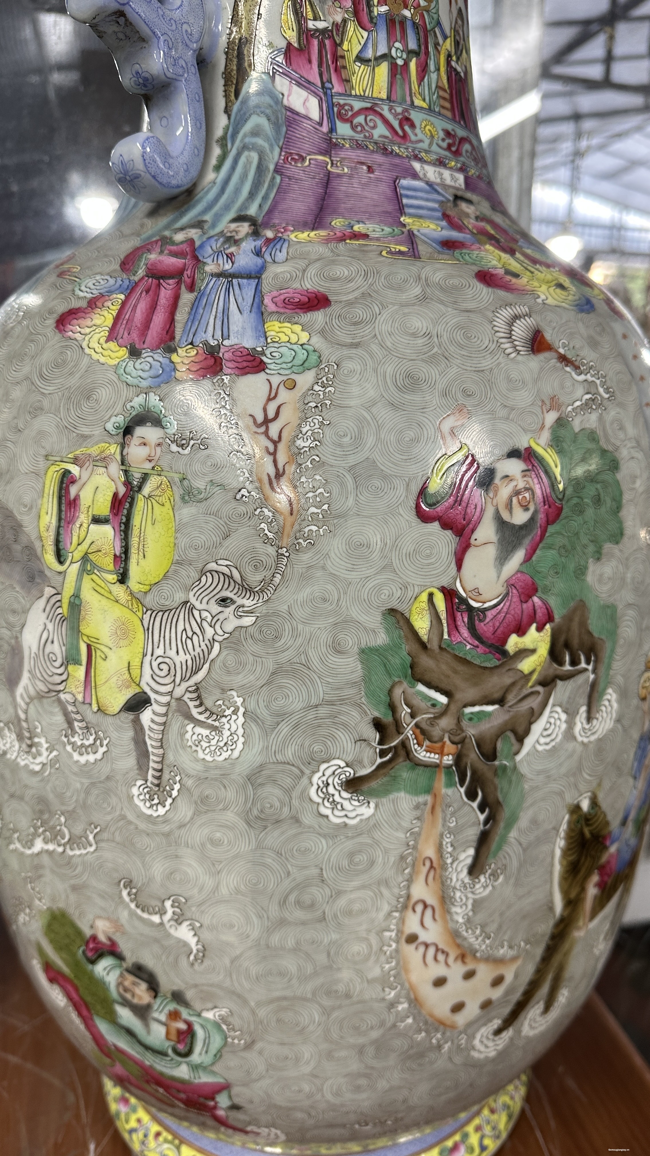 Độc bình cũ vẽ hội quần tiên du xuân tơ tóc , vẽ tay nung củi hàng kỹ thuật cao, chôn và cốt già đồ.