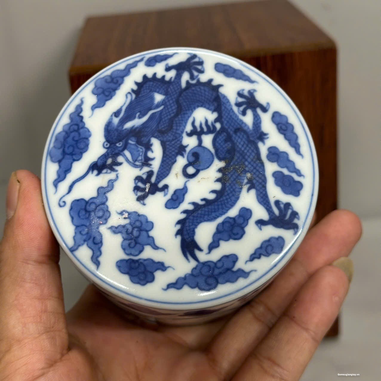 Hũ chè nắp úp vẽ tay nung củi hàng kỹ thuật cao, chôn và cốt cực kỳ già đồ, phỏng theo lối cổ.