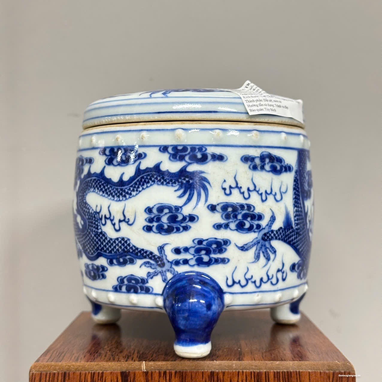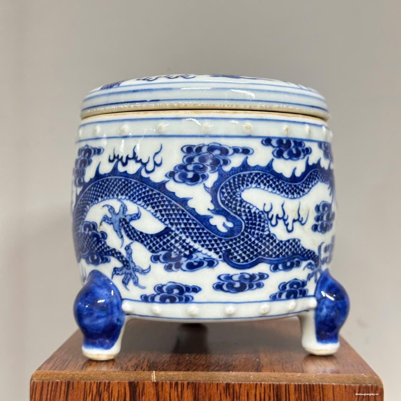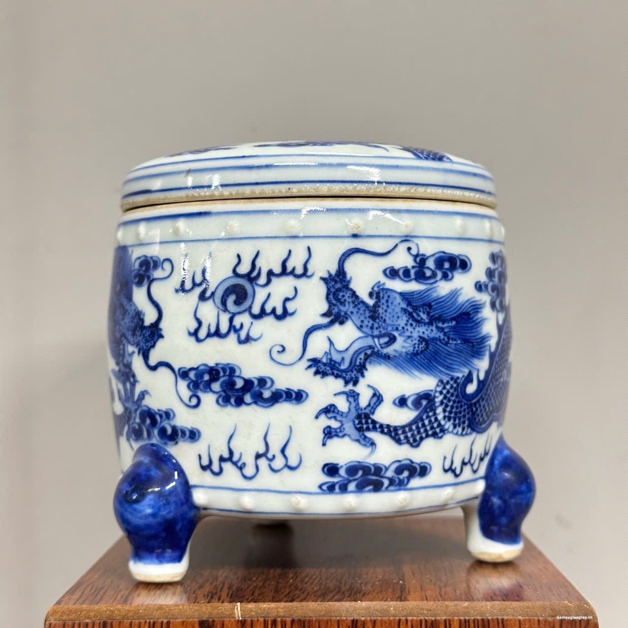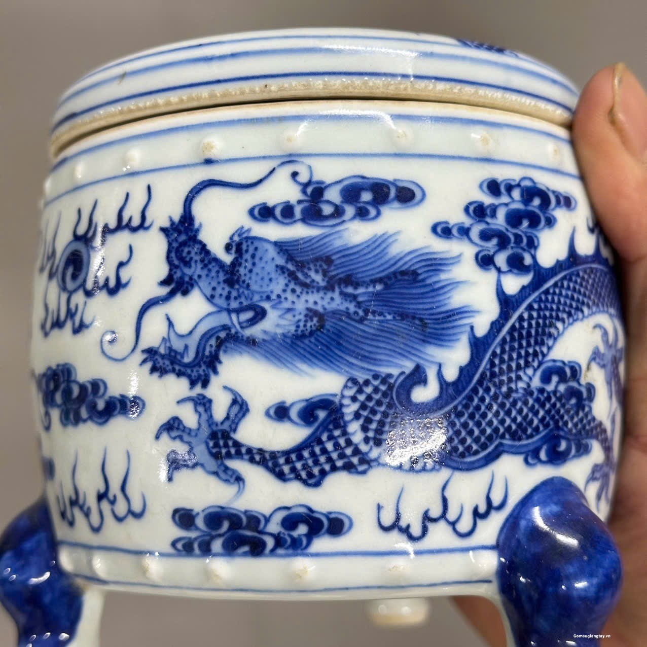 Liễn rồng ba chânvẽ tay nung củi hàng kỹ thuật cao, chôn và cốt cực kỳ già đồ, phỏng theo lối cổ thời thanh.