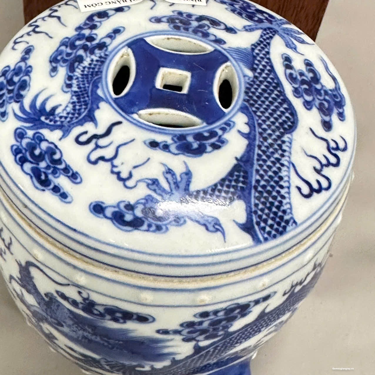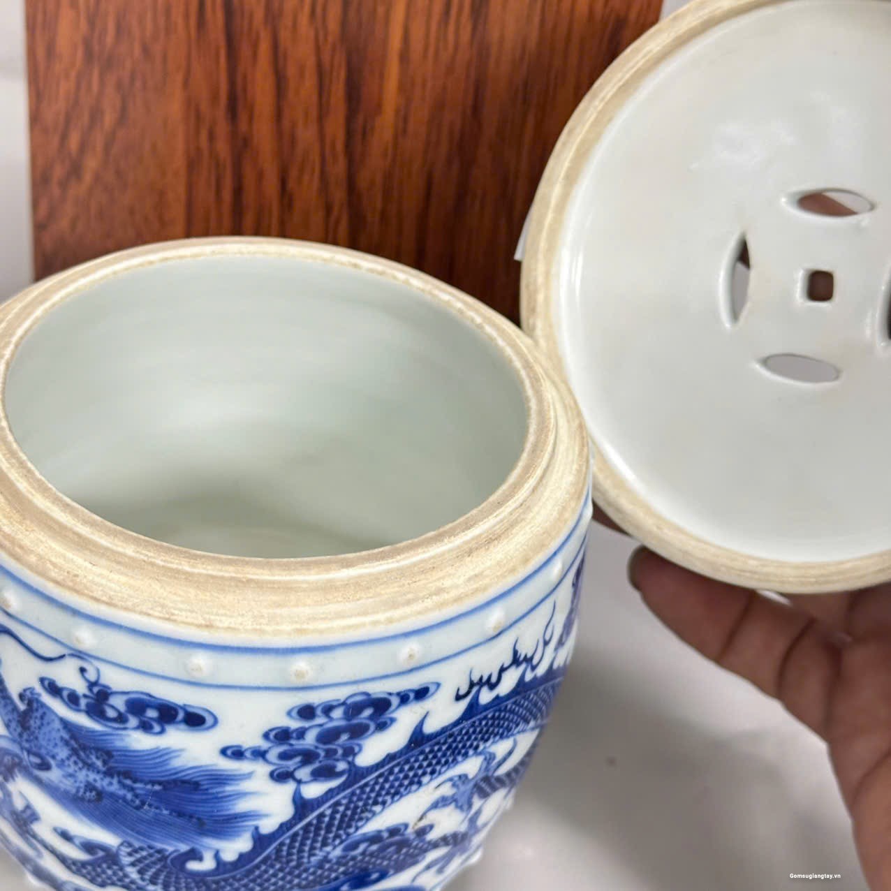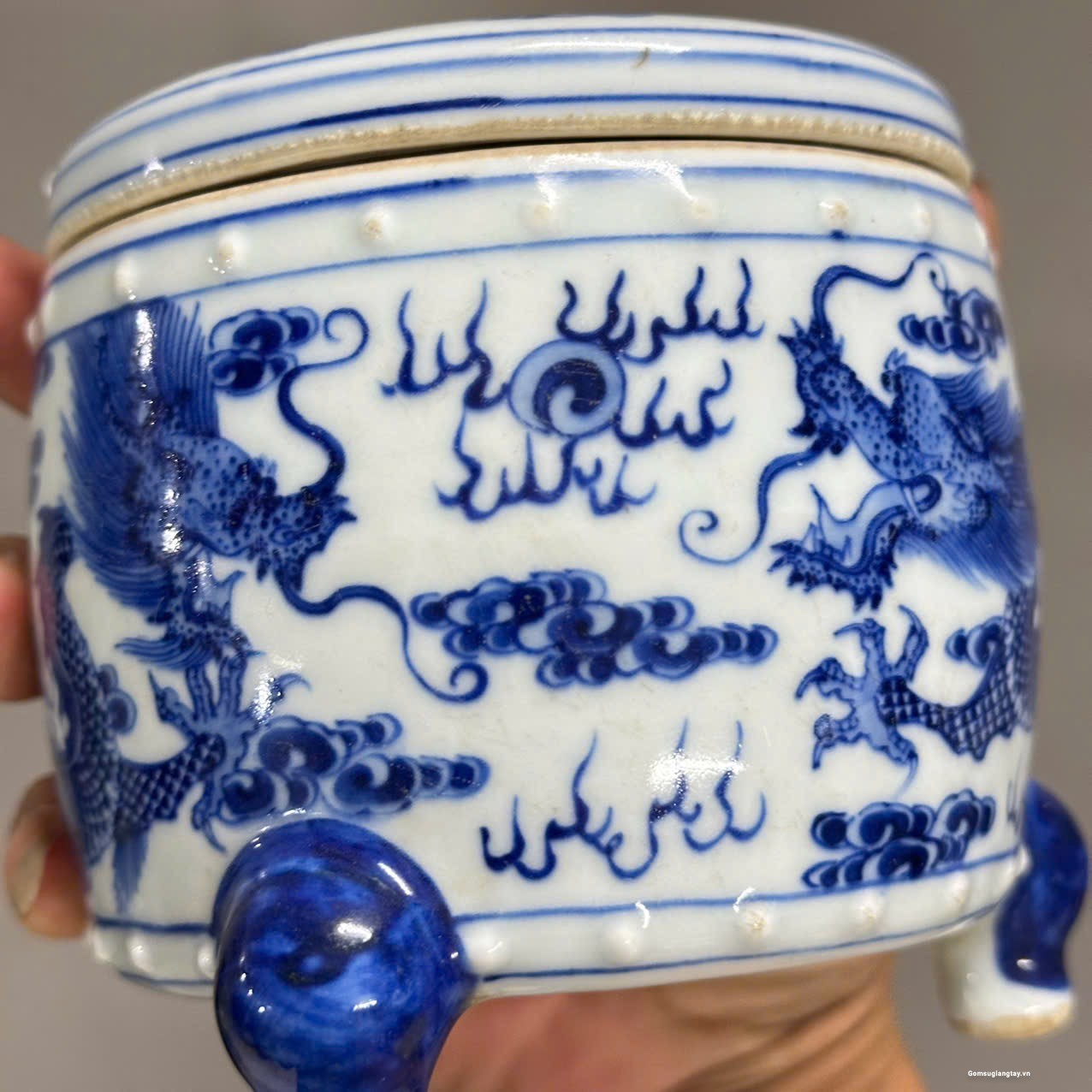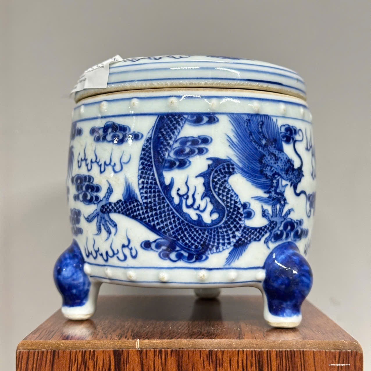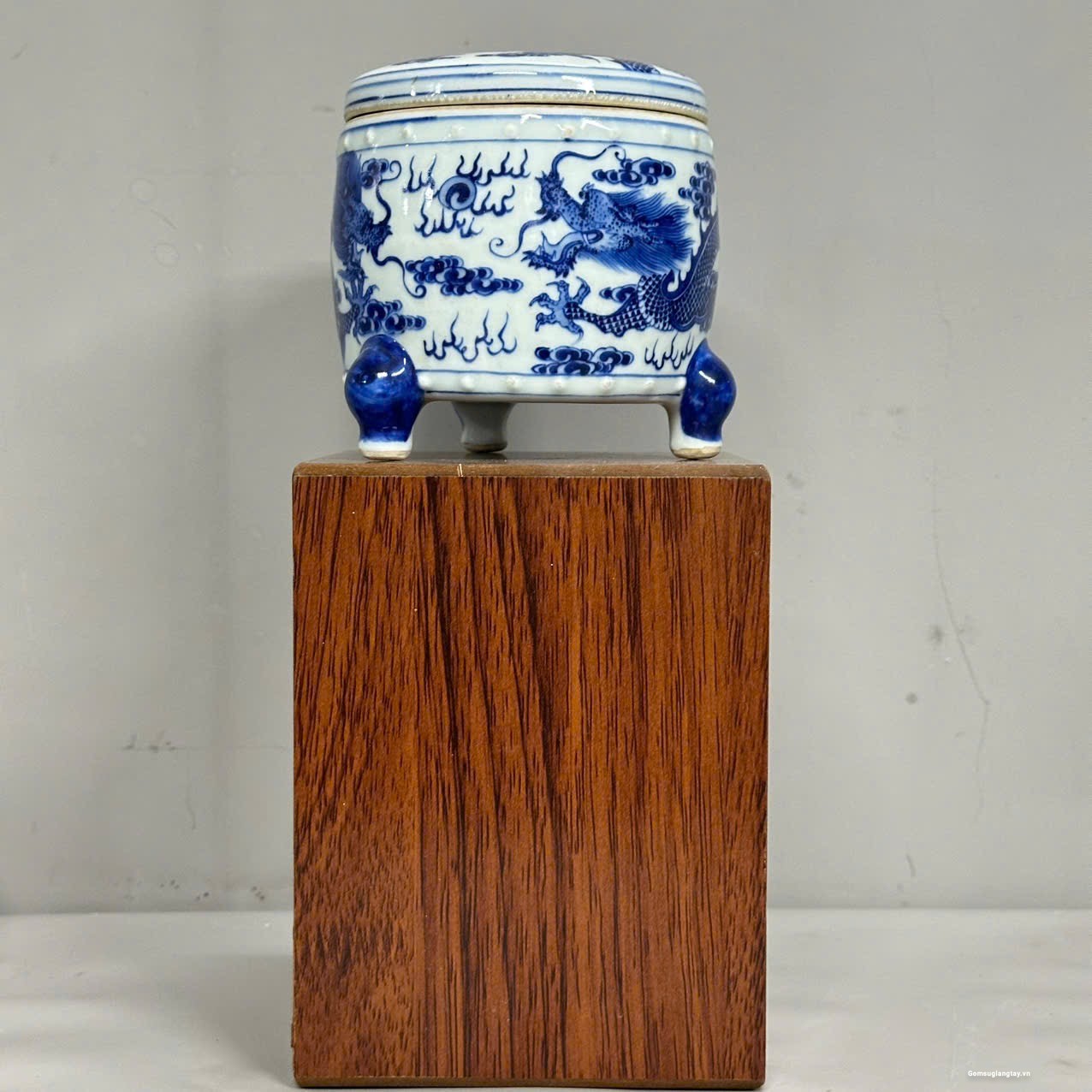 Liễn rồng ba chânvẽ tay nung củi hàng kỹ thuật cao, chôn và cốt cực kỳ già đồ, phỏng theo lối cổ thời thanh.