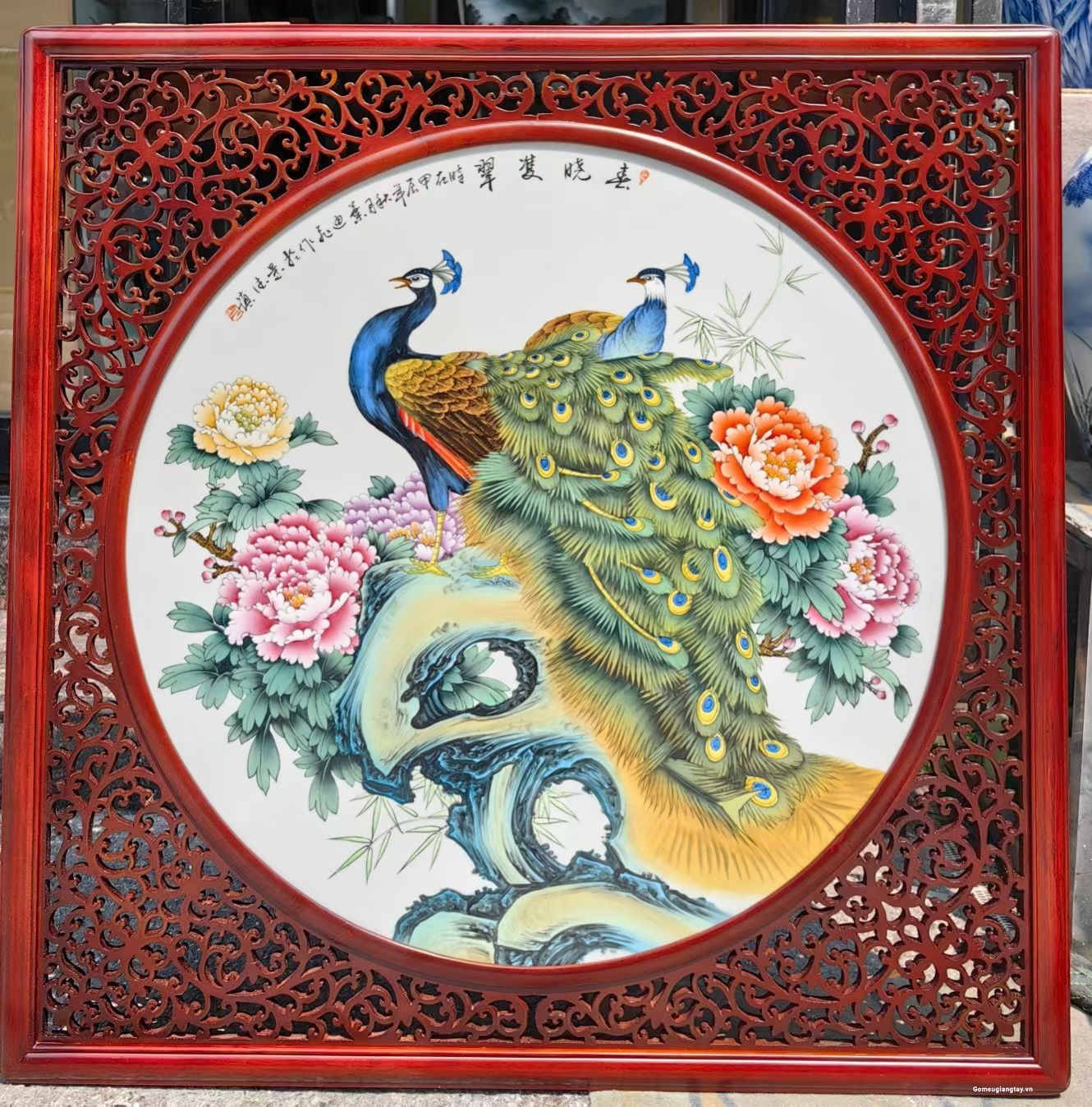 Tranh vuông vẽ tay vẽ tranh khổng tước bình an, hạnh phúc. đẹp từng chi tiết, khung chế tác chắc chắn bền theo thời gian