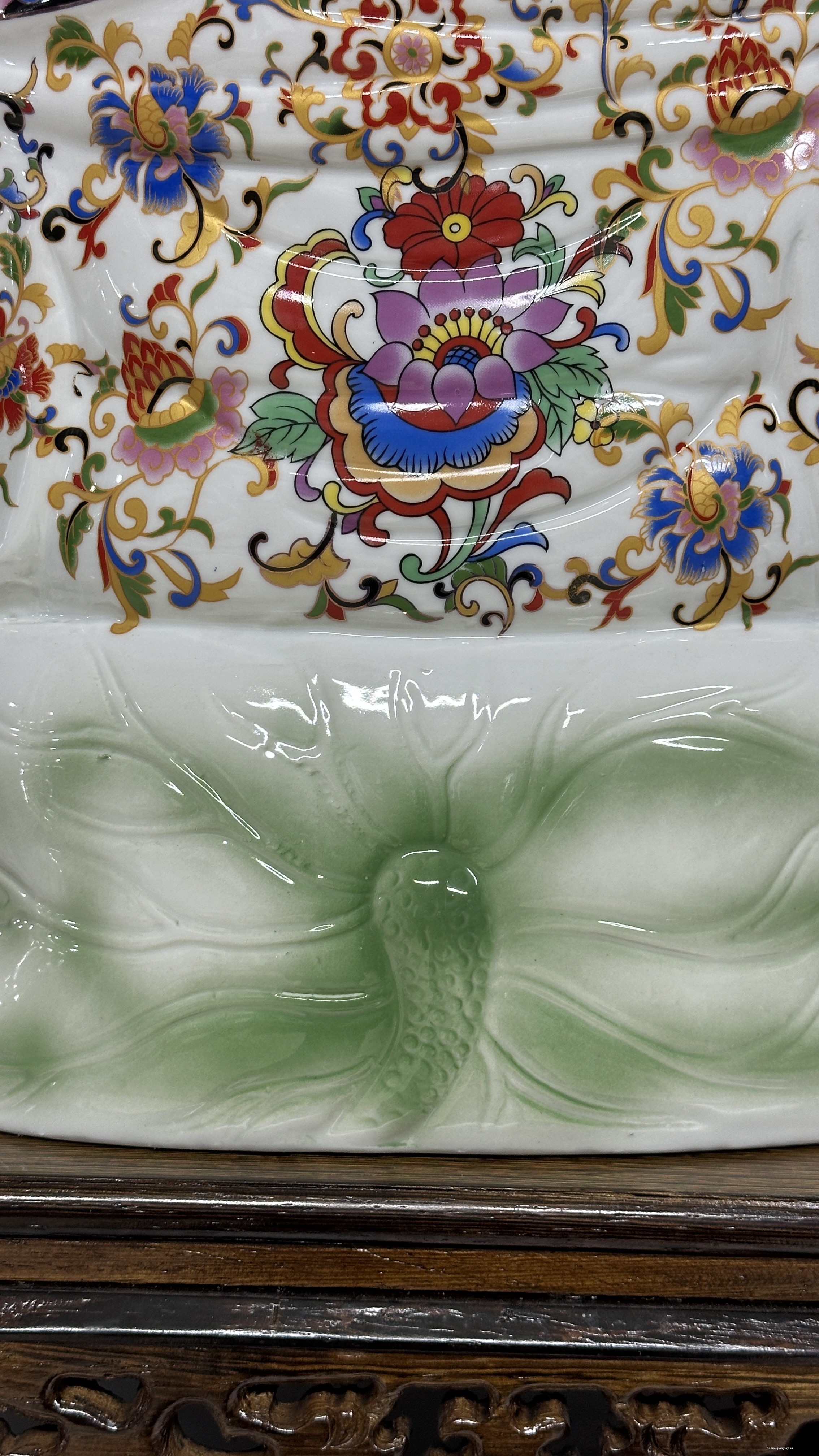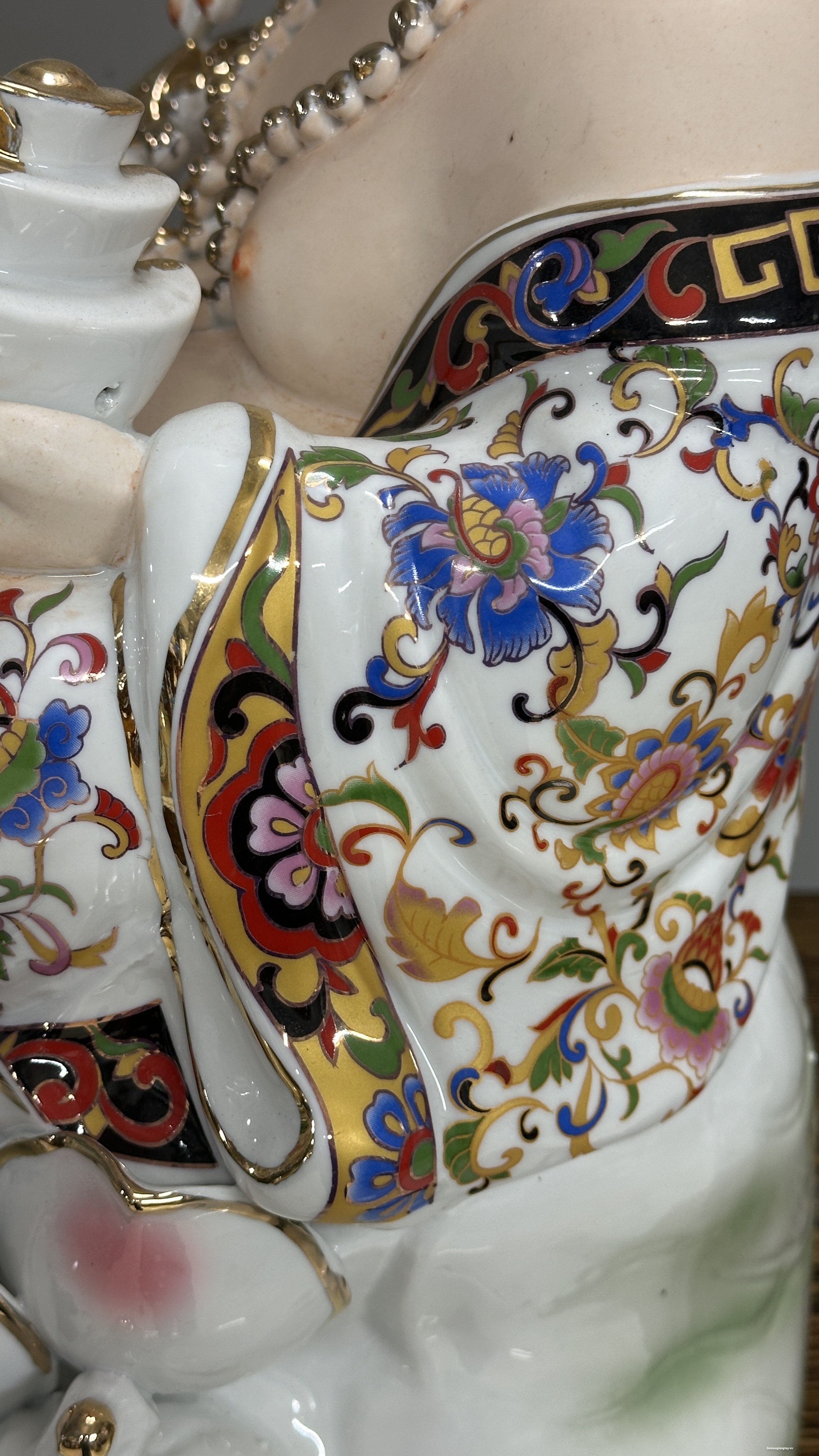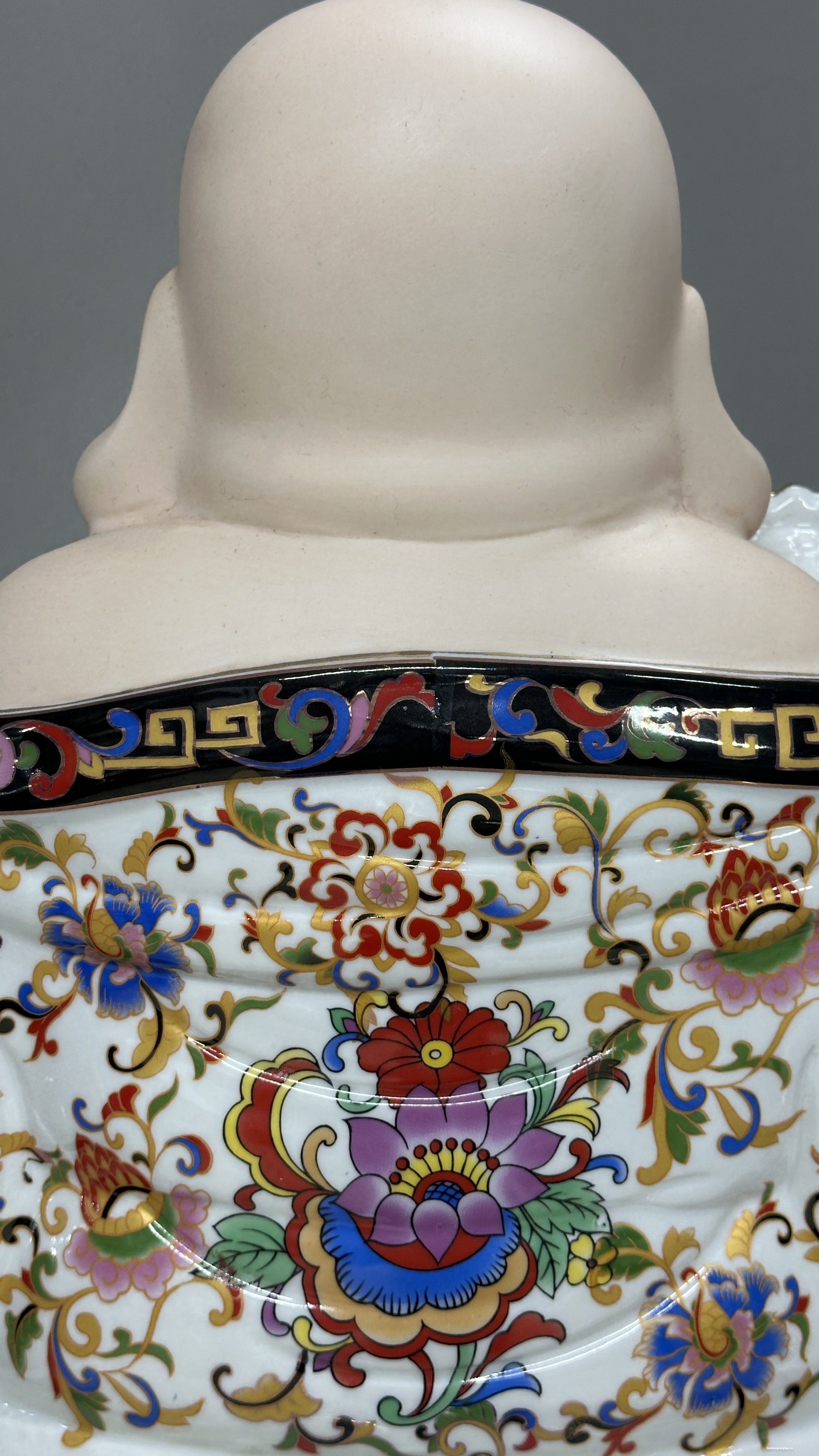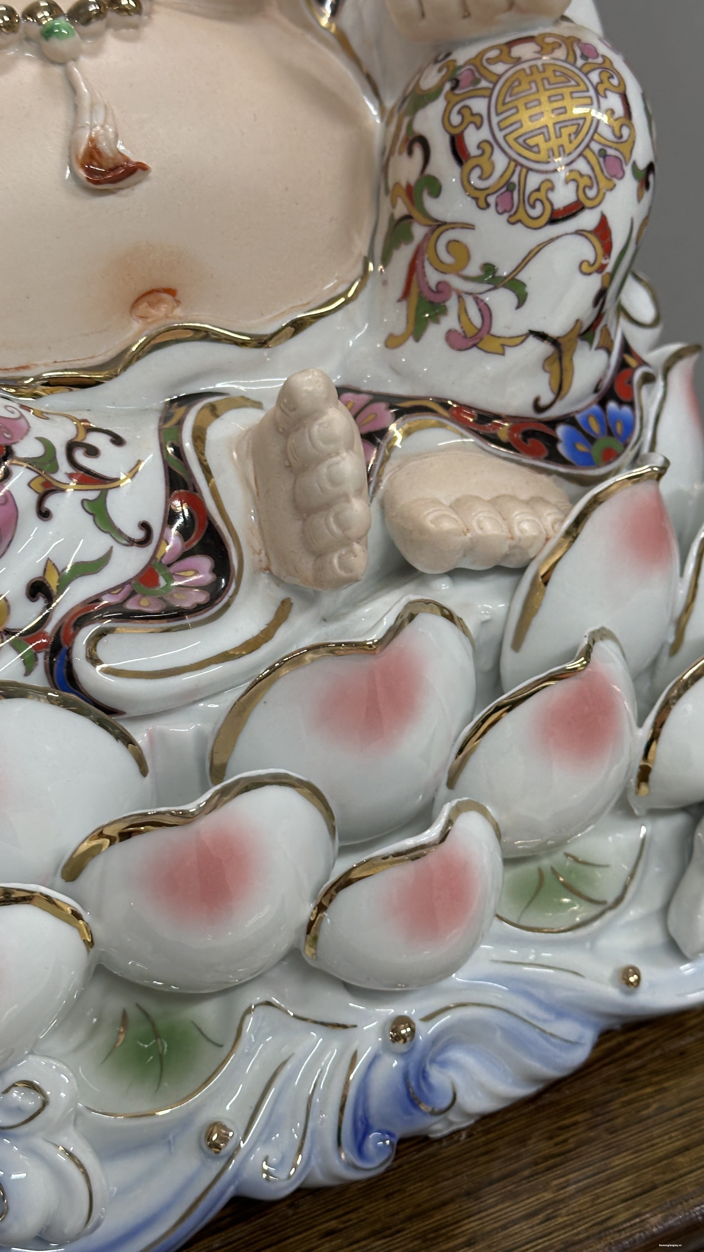 Tượng di lặc cụ ngồi đài sen rất bề thế, rất đẹp được nung với nhiệt độ cao cực kỳ bền.